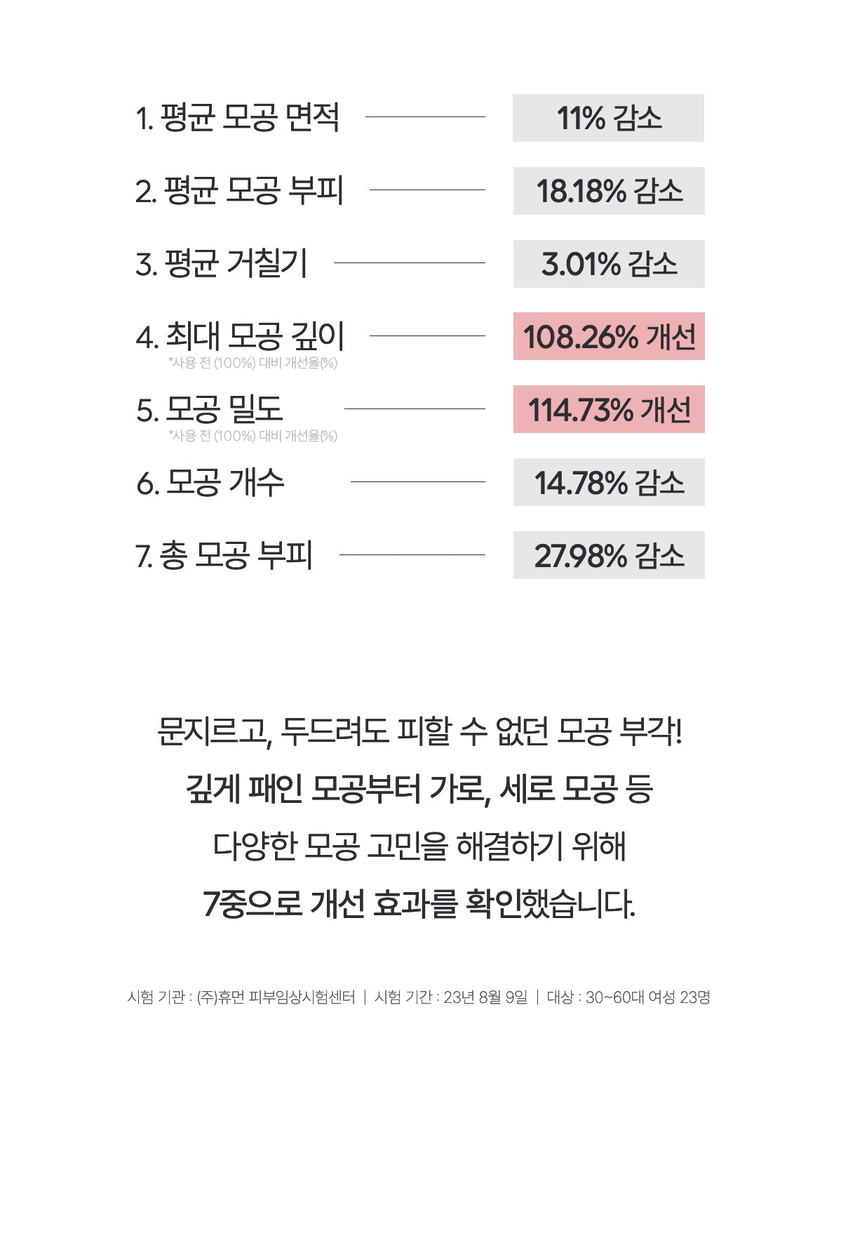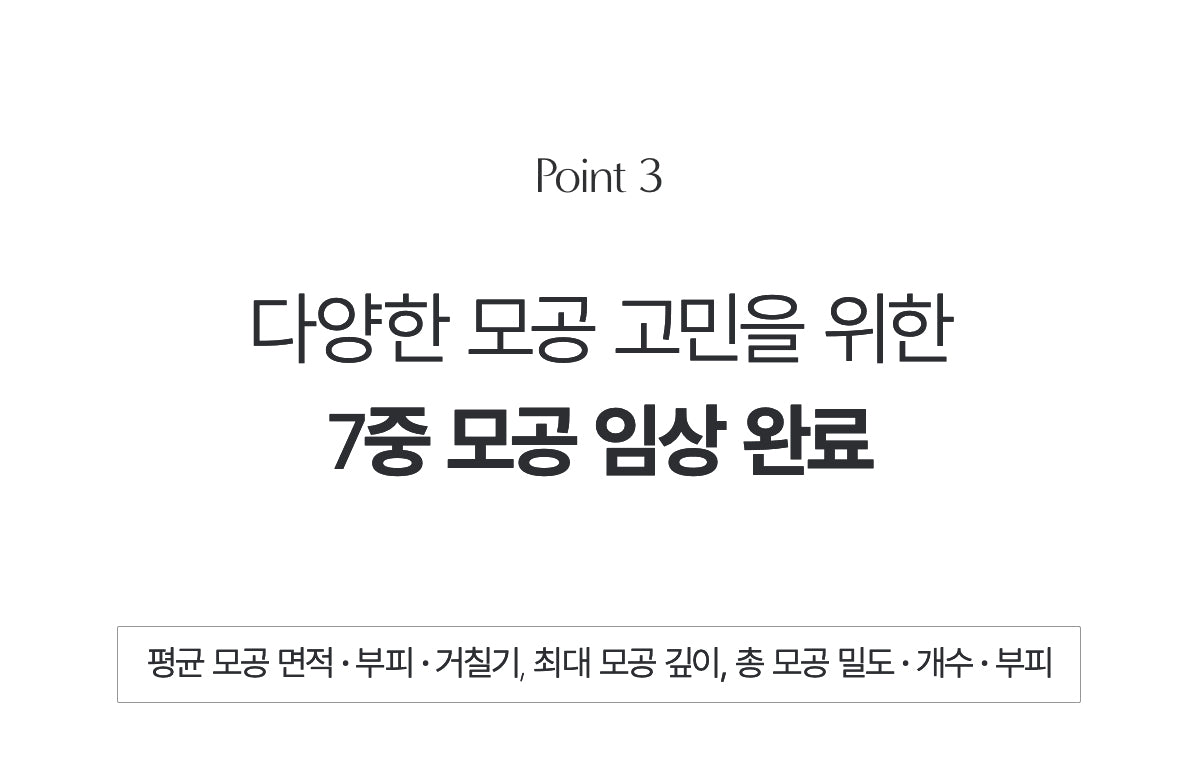 - Pore Refinement: Reduces average pore size, volume, roughness, maximum pore depth, total pore density, and pore number for visibly smoother skin.