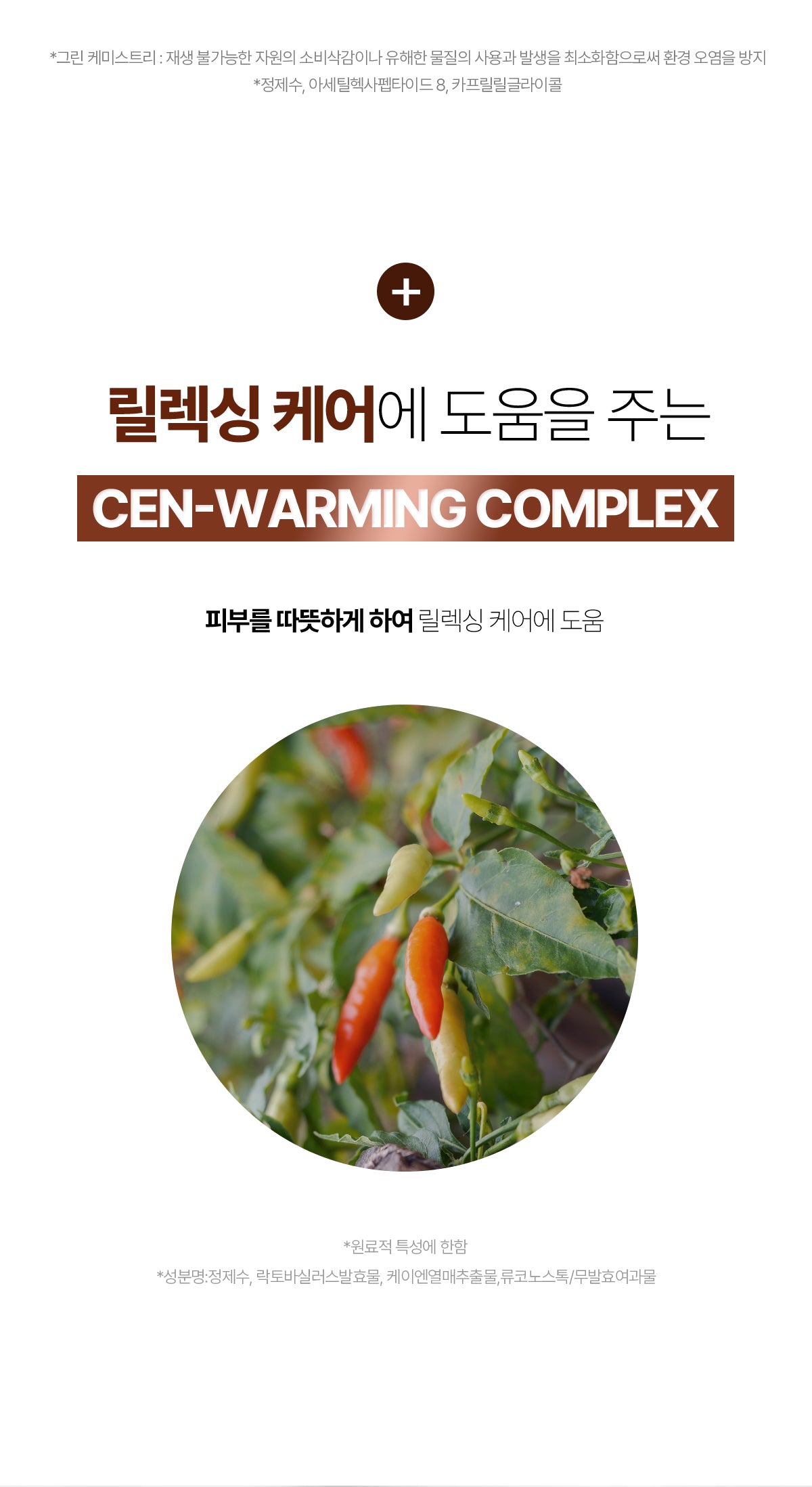- CEN-WARMING COMPLEX – Provides a warming effect, enhancing relaxation and absorption.