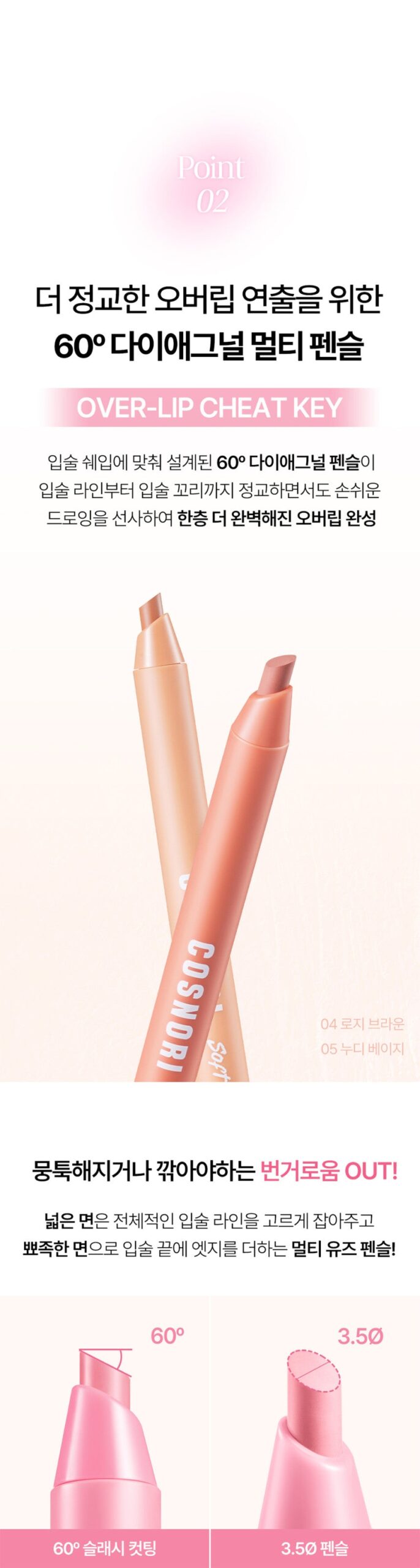 This lip pencil’s shades are optimized to enhance and correct lip color, delivering a natural, fuller look. The color-correcting formula softens the lip line, allowing you to achieve a plump overlip effect that looks like your lips—just a little fuller! Use it on its own for various looks, whether overlip, shading, base, or even lip concealing.