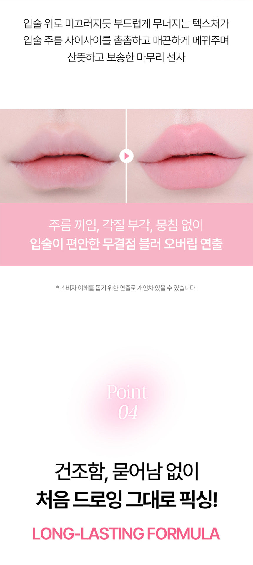 The pencil glides smoothly across the lips, creating a soft blur effect that covers without emphasizing lines or dry skin. Enjoy a comfortable, even finish without clumping or settling into fine lines.