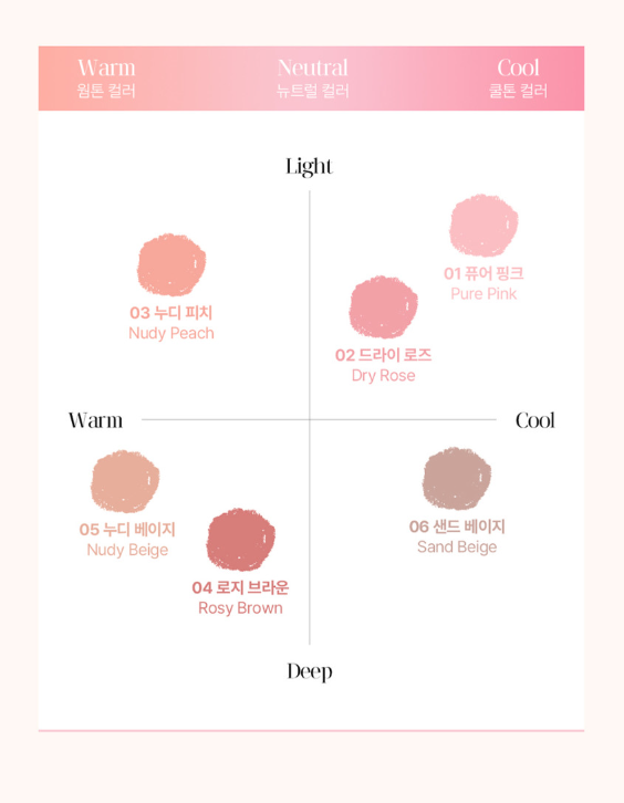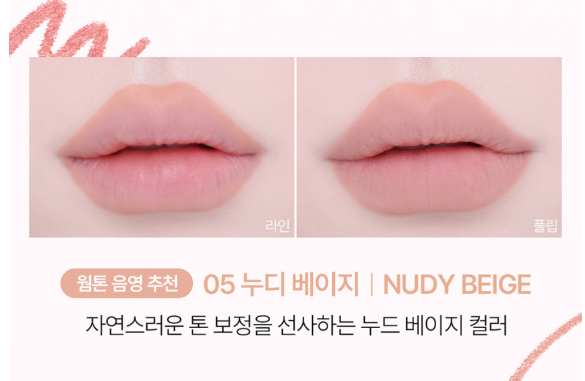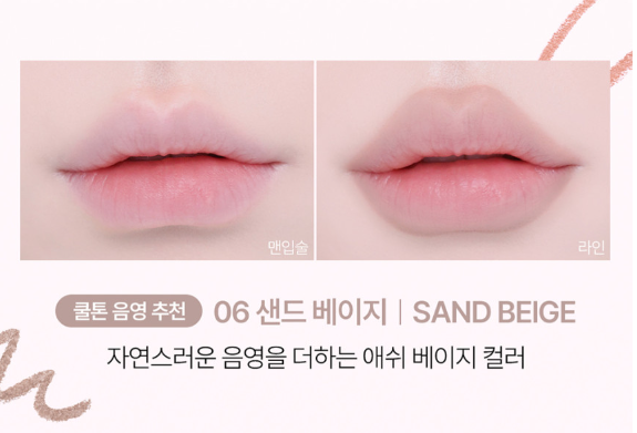- Use shades 05 Nude Beige and 06 Sand Beige along the lip line, philtrum, and corners of the mouth for a dimensional look that highlights your natural shape.