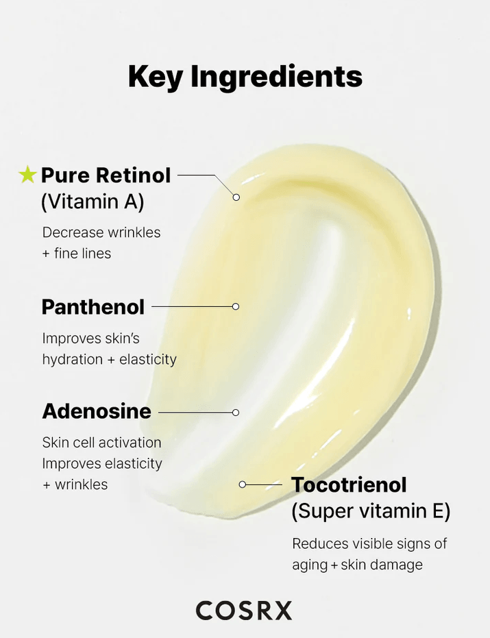 Introducing your beginner-friendly solution to early signs of aging. COSRX The Retinol 0.1 Cream is formulated with 0.1% pure retinol and soothing ingredients to deliver visible results with minimal irritation—perfect for first-time retinol users or those with sensitive skin.