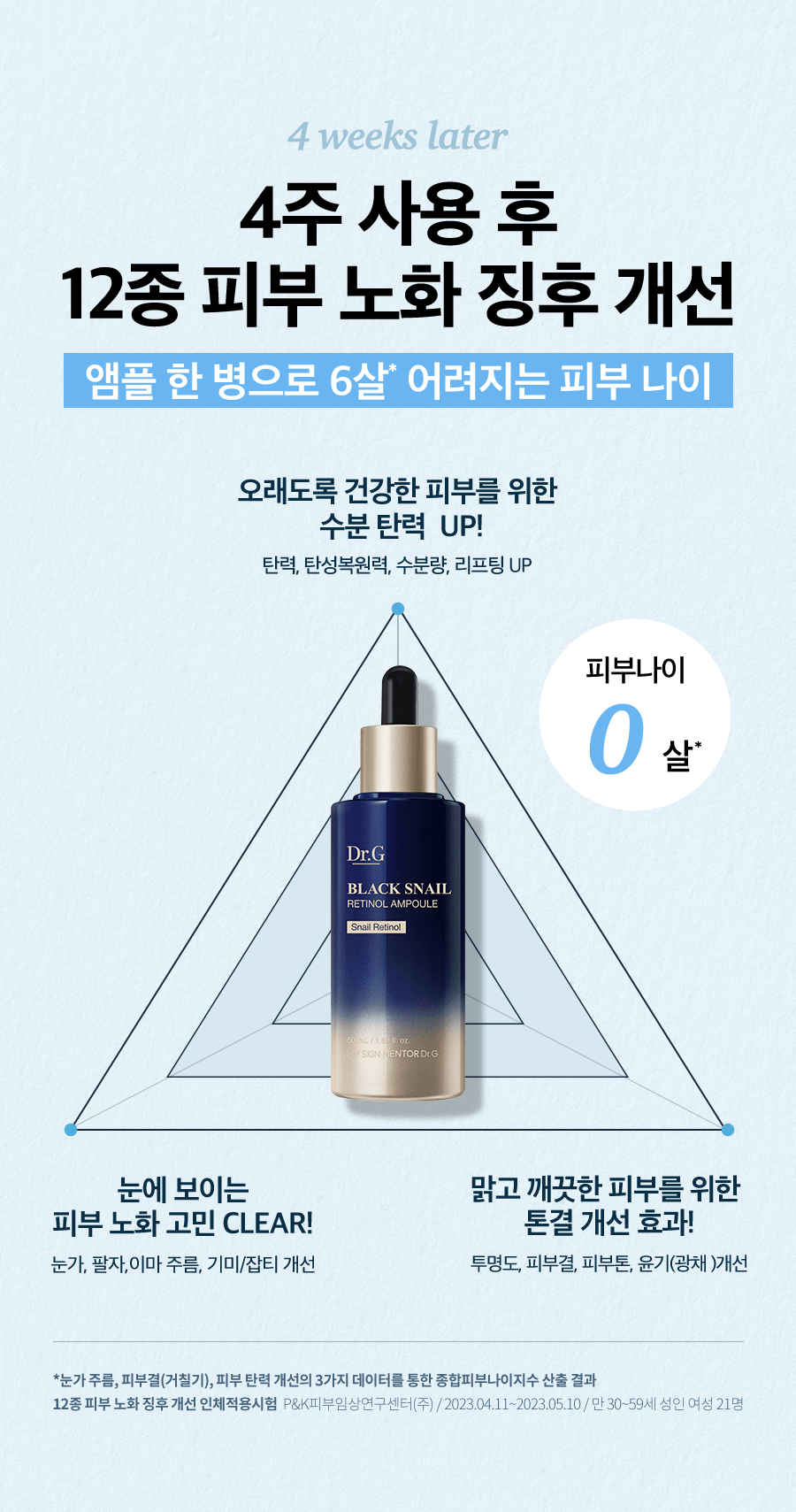 Our Black Snail Retinol Ampoule addresses 12 different signs of skin aging within just 4 weeks of use, turning back the clock to reveal skin that looks 6 years younger. From boosting moisture and elasticity to improving skin tone and reducing the appearance of aging, our blend of antioxidants including Black Snail extract, Retinol, and ACTIVE MUCIN works synergistically to offer unparalleled anti-aging effects. Notice a significant improvement in the 3 major wrinkle areas: eyes, smile lines, and forehead.