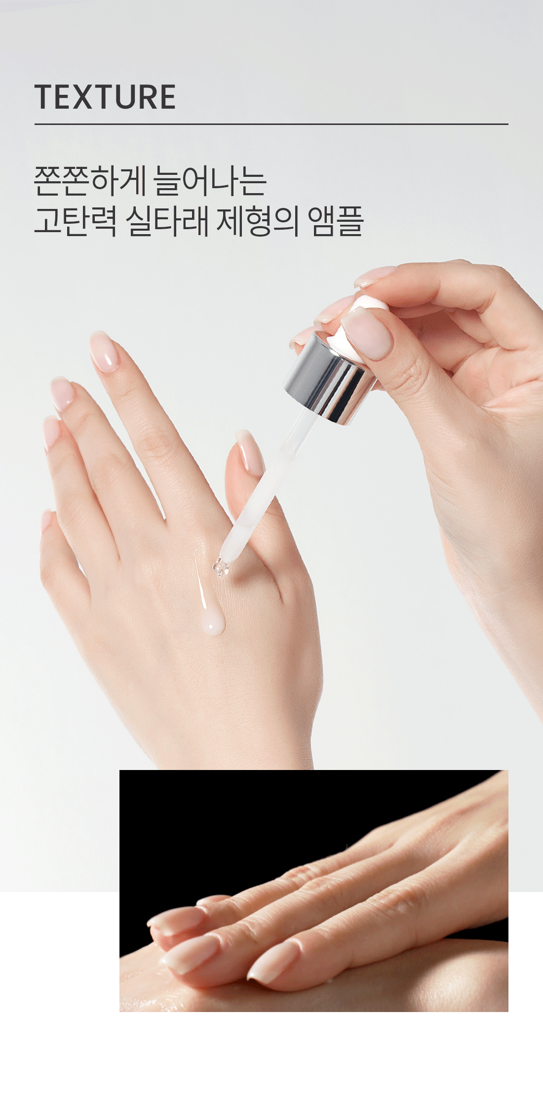 Our ampoule boasts a highly elastic, thread-like texture that stretches and adheres to the skin, ensuring deep penetration and optimal absorption.