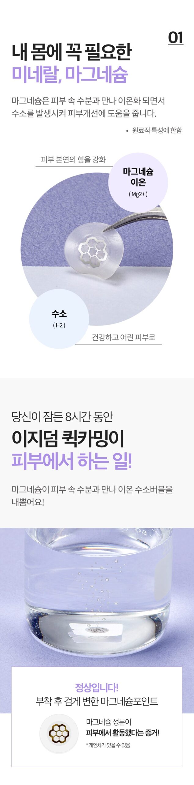 Magnesium: Magnesium, when combined with moisture in the skin, ionizes to release hydrogen, aiding in skin improvement. The darkening of the magnesium points after application indicates active skin interaction.