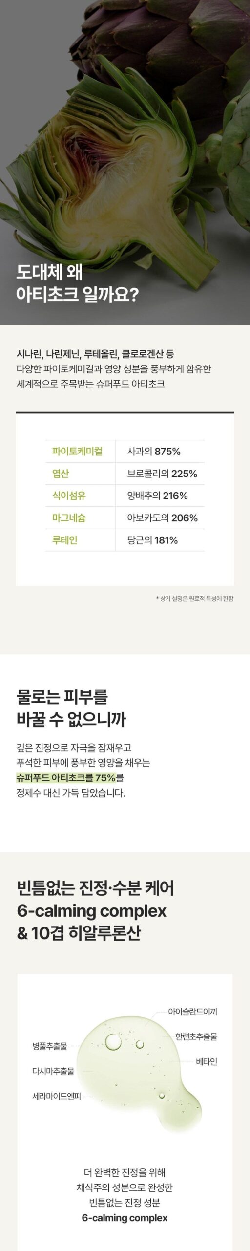 A calming ampoule containing artichoke, a superfood that quickly soothes sensitive skin, to restore hot and red skin barrier to health.