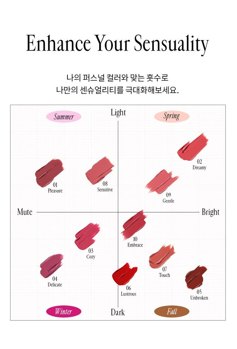 Choose from a curated collection of 10 gorgeous shades, designed to highlight your personal sensuality. Whether you prefer bold, vivid tones or subtle, understated hues, this range has a color for every look and occasion.