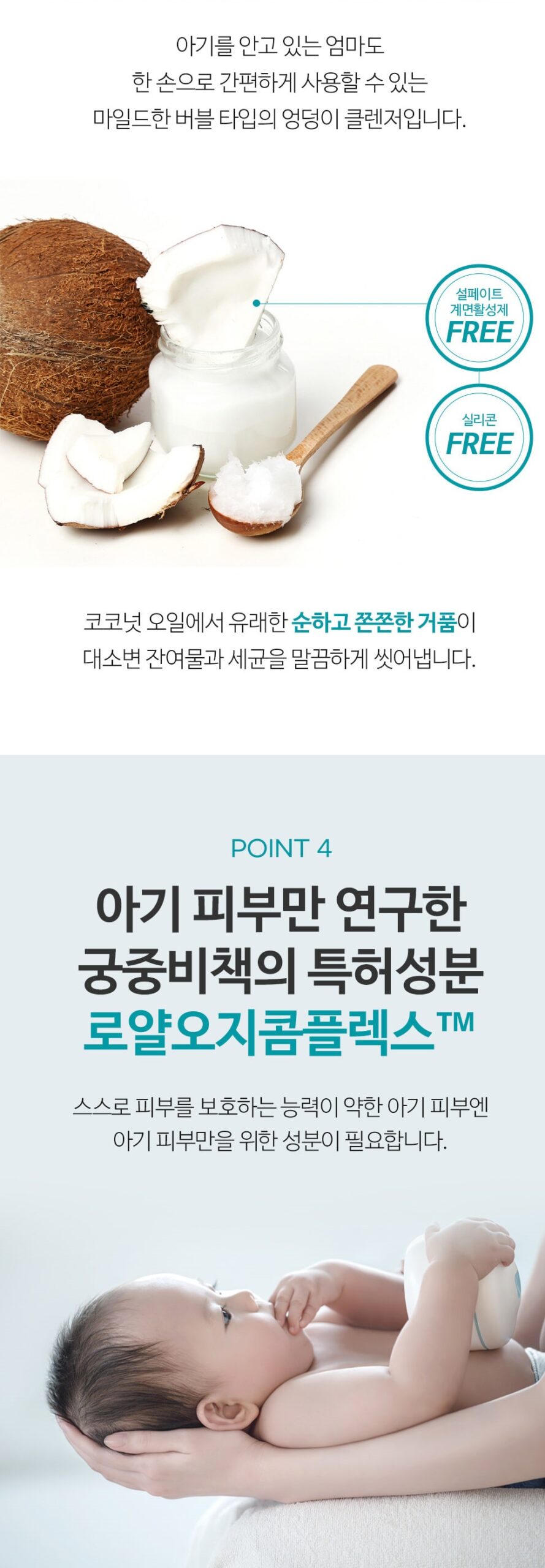 Foam-type cleanser dispenses easily with one hand — perfect for parents during diaper changes.