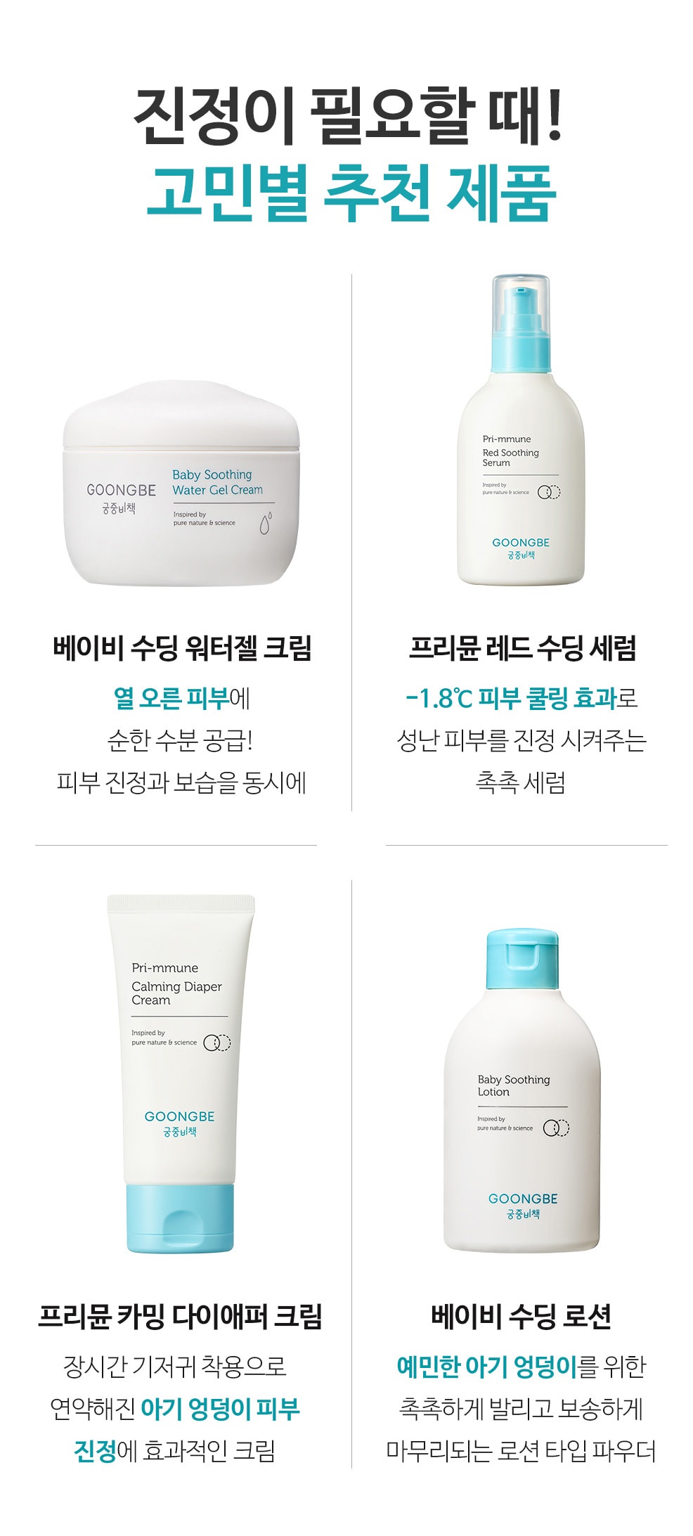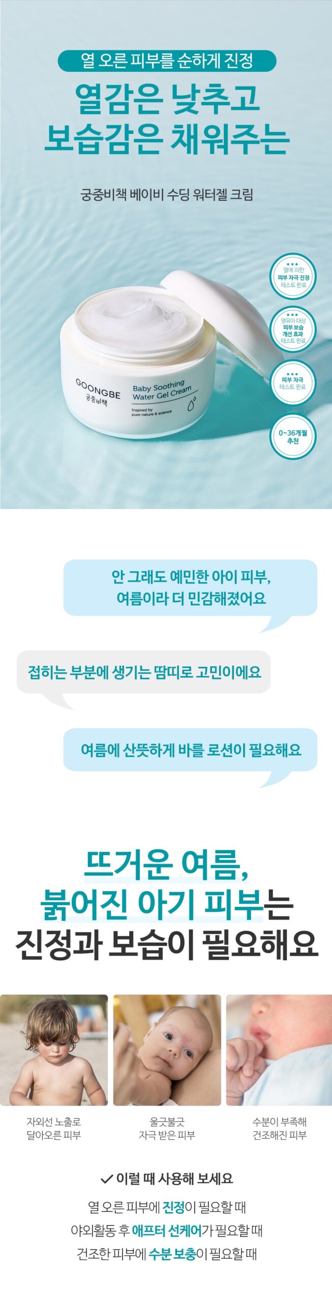 夏の暑さに最適です。GOONGBEは我が子のお肌をすばやく整え、乾燥も防いでくれます。本当にありがたいアイテム!