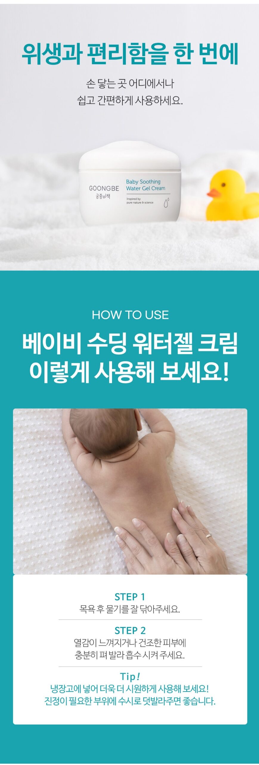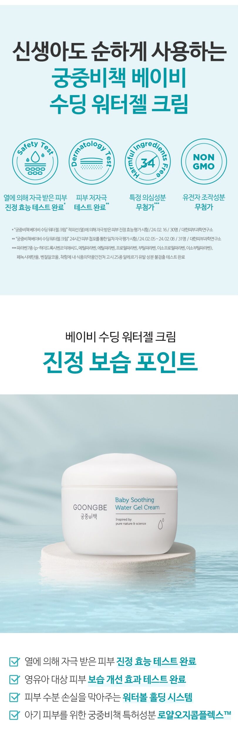 GOONGBE Baby Soothing Water Gel Cream is a parent-approved summer essential that offers fast, gentle relief for your baby’s most delicate skin. Backed by science and tradition, it brings the best of Korean royal care to your little one.