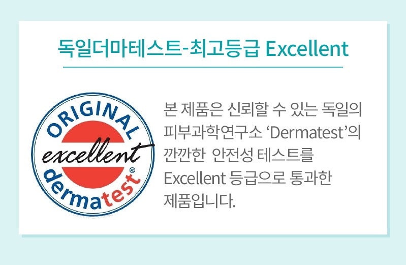 This product has passed the rigorous safety test of “Dermatest”, a reliable German dermatological research institute, with an Excellent grade.