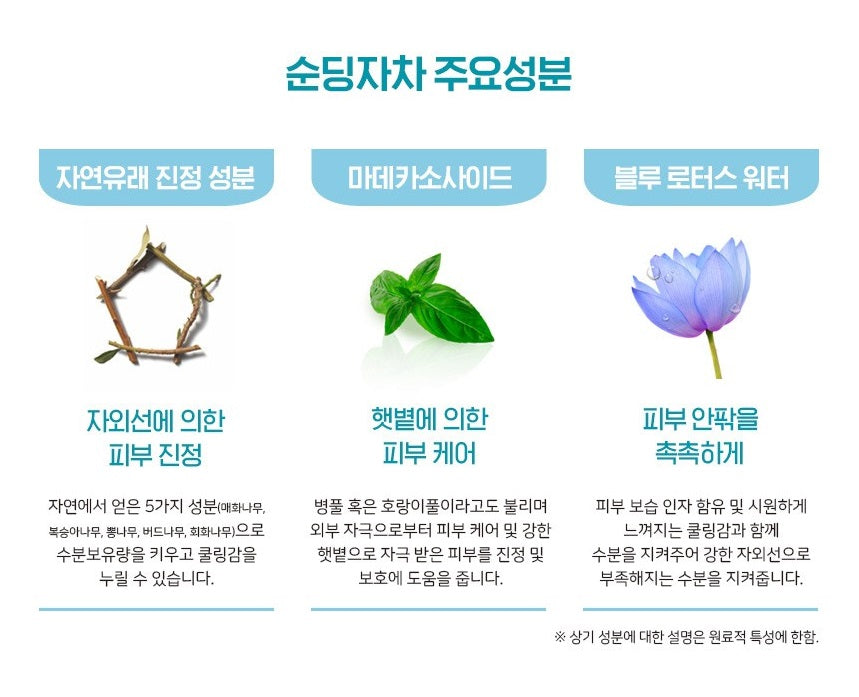 With 5 ingredients obtained from nature (plum tree, peach tree, mulberry tree, willow tree, and cypress tree), you can increase water retention and enjoy a cooling feeling.
