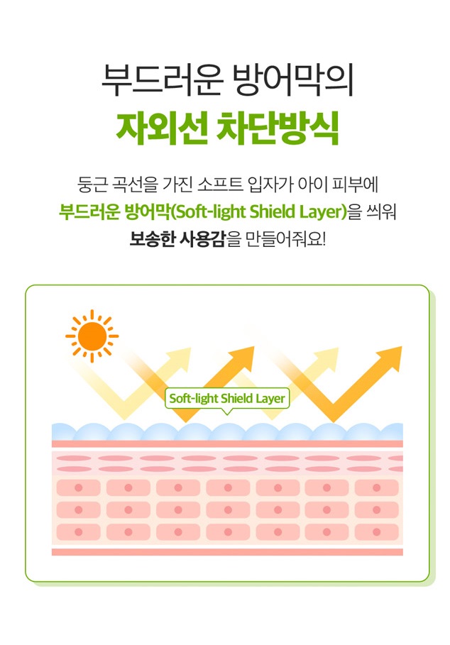 Our product offers powerful dual UV protection and a natural tone-up for perfect adhesion sun care. The soft particles with round curves form a gentle protective layer on your child’s skin, effectively blocking UVA and UVB rays.