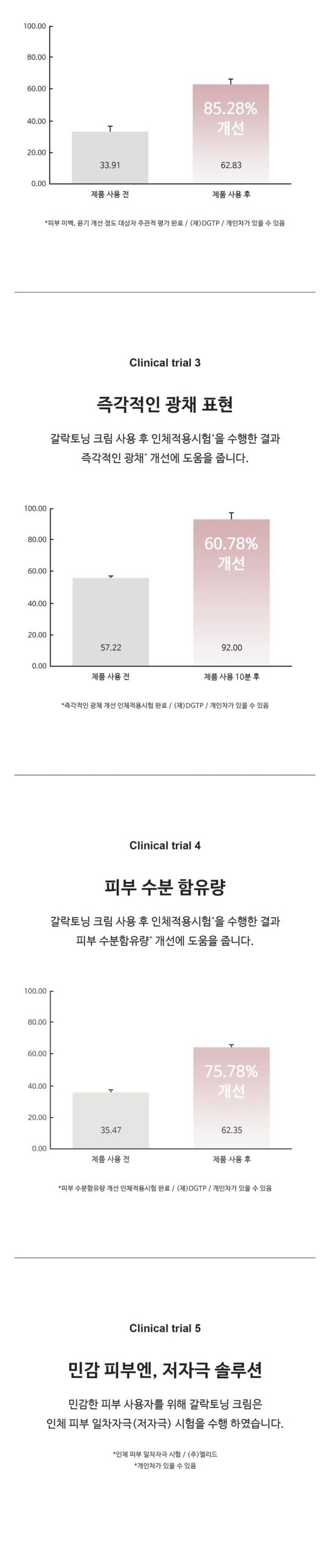 - Successfully passed 8 human application tests for improvements in skin tone, glow, redness, moisture, roughness, and wrinkles.