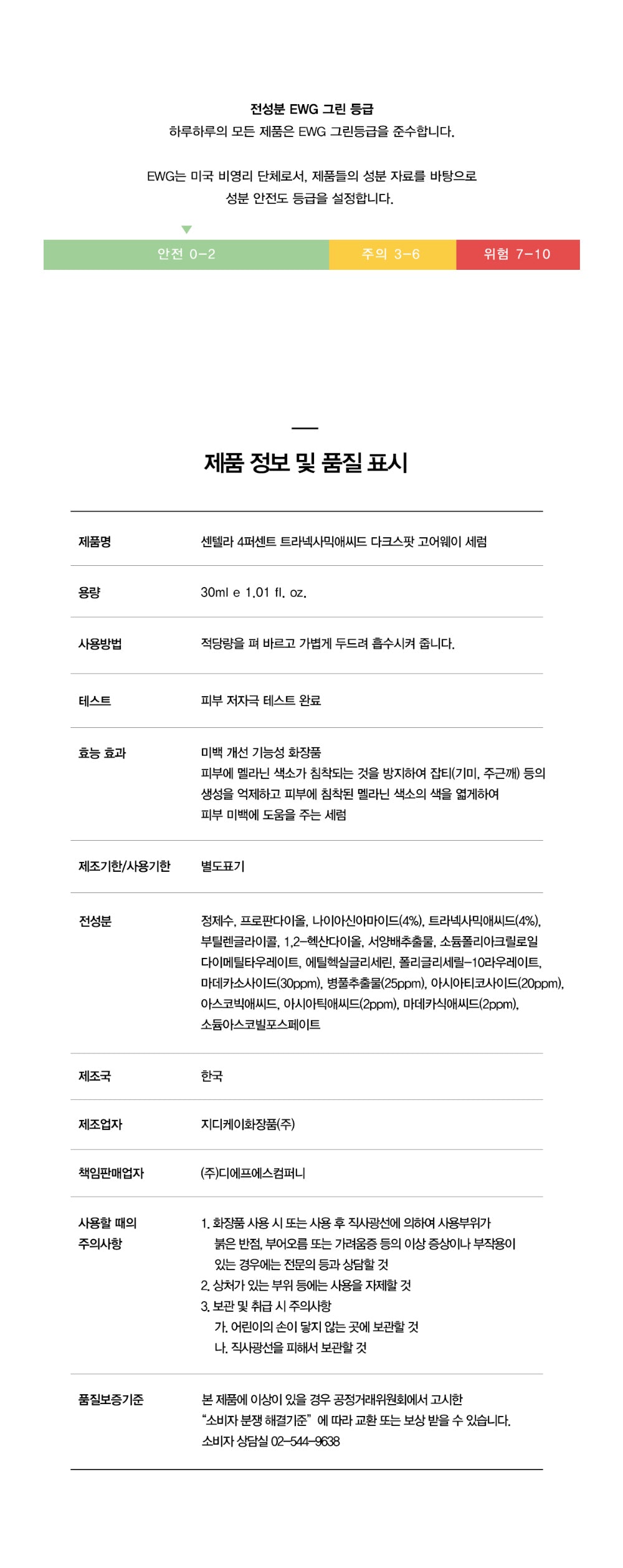 Water, Propanediol, Niacinamide(4%), Tranexa mic Acid(4%), Butylene Glycol, 1,2-Hexanediol, Pyrus Communis (Pear) Fruit Extract, Sodium Polyacryloyldimethyl Taurate, Ethylhexylglycerin, Polyglyceryl-10 Laurate, Madecassoside(30ppm), Centella Asiatica Extract(25ppm), Asiaticoside(20ppm), Ascorbic Acid, Asiatic Acid(2ppm), Madecassic Acid(2ppm), Sodium Ascorbyl Phosphate