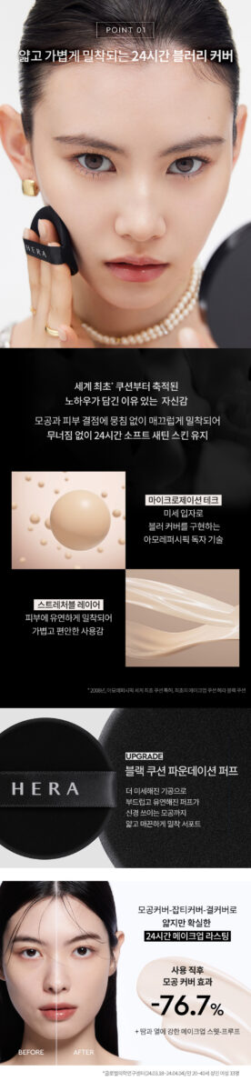 Uso el HERA New Black Cushion Foundation y me ha encantado su efecto ligero. Perfecto para mi piel, cubre imperfecciones durante todo el día sin sentirse pesado.