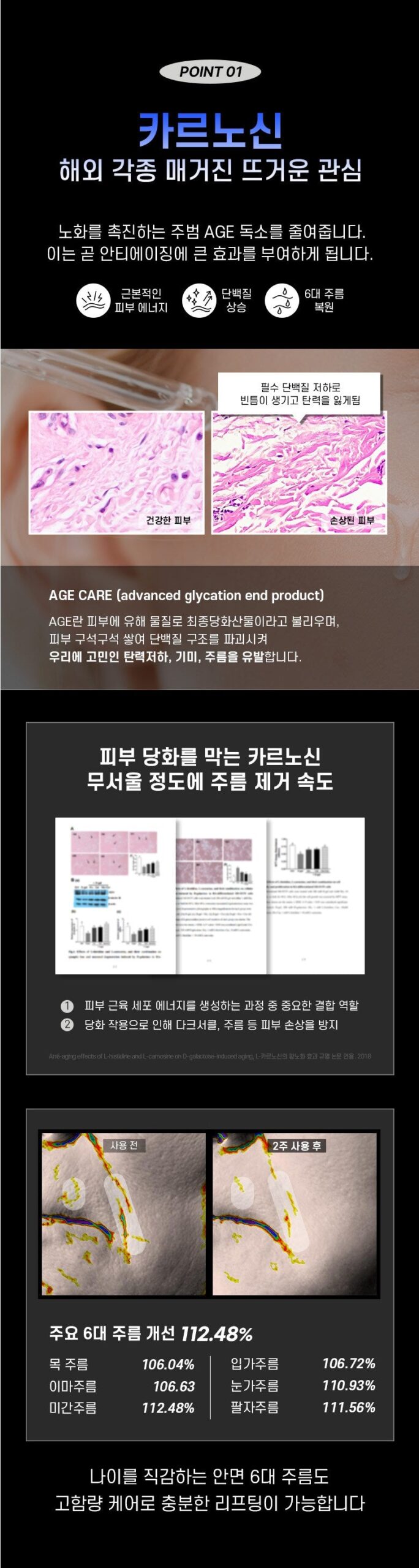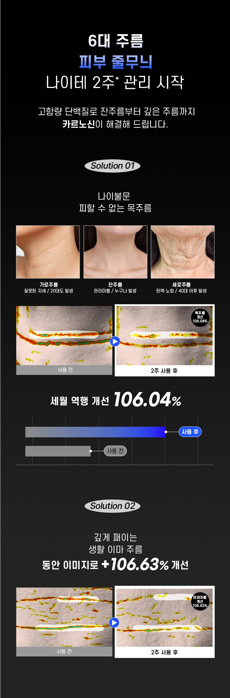 Before & After: Dark skin brightness increases from 0.00% to +101.80% after two weeks of use.