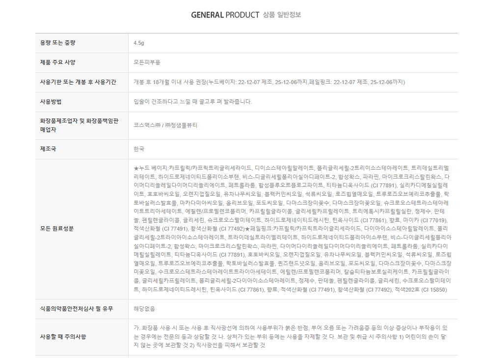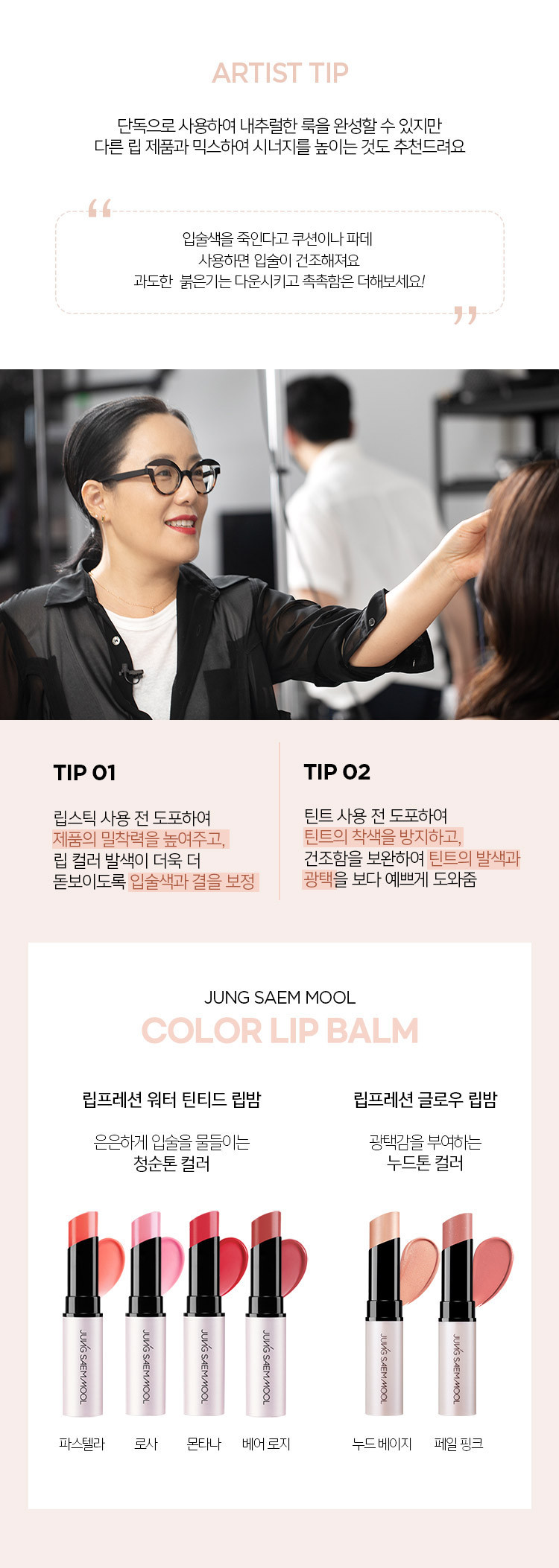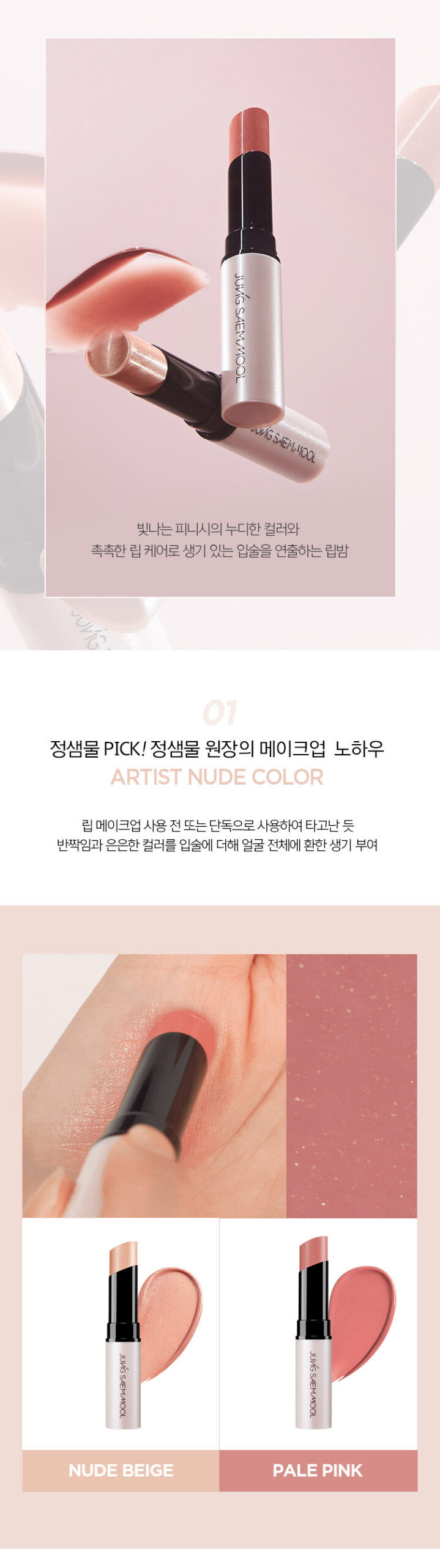 - Director Saemmool Jung’s makeup expertise ARTIST NUDE COLOR : Before using lip makeup or using it alone, it looks natural Brighten up the entire face by adding glitter and subtle color to the lips.