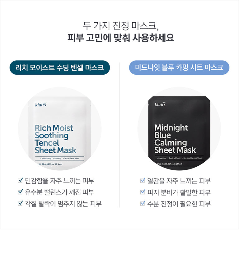 The Klairs Midnight Blue Calming Sheet Mask is your go-to solution for daily skin soothing and hydration, offering a comfortable, moisturizing experience for all skin types.