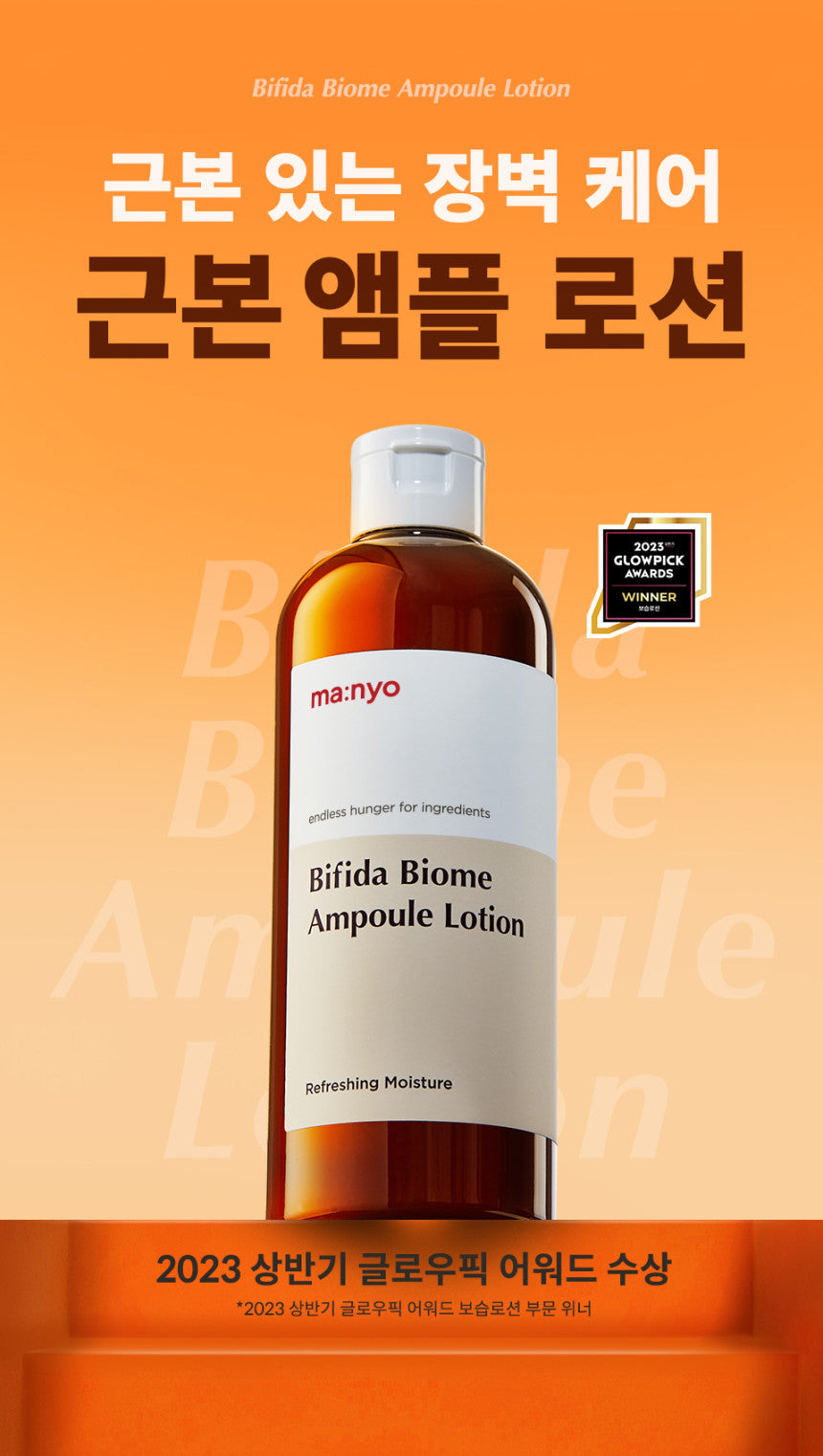Discover the essence of youthful, radiant skin with ma:nyo Factory’s Bifida Biome Ampoule Lotion. This unique blend of Bifida Biome™ and probiotics, not live bacteria but derived from fermented lactic acid bacteria components, nurtures the skin’s fundamental strength every day, paving the way for a robust skin barrier and a balanced, healthy complexion.
