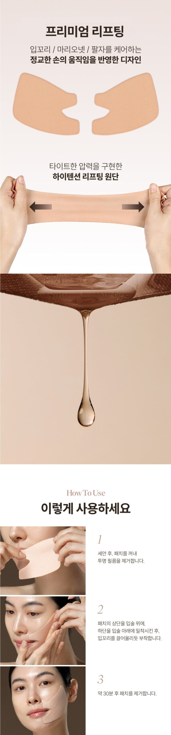 Enhance firmness around the smile zone—mouth corners, marionette lines, and smile creases—with our advanced lifting patch. Tailored for: