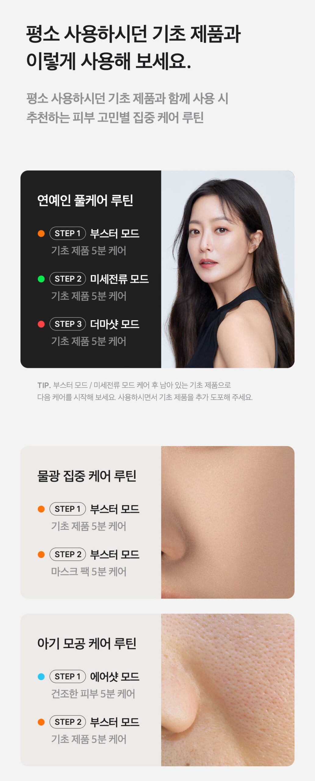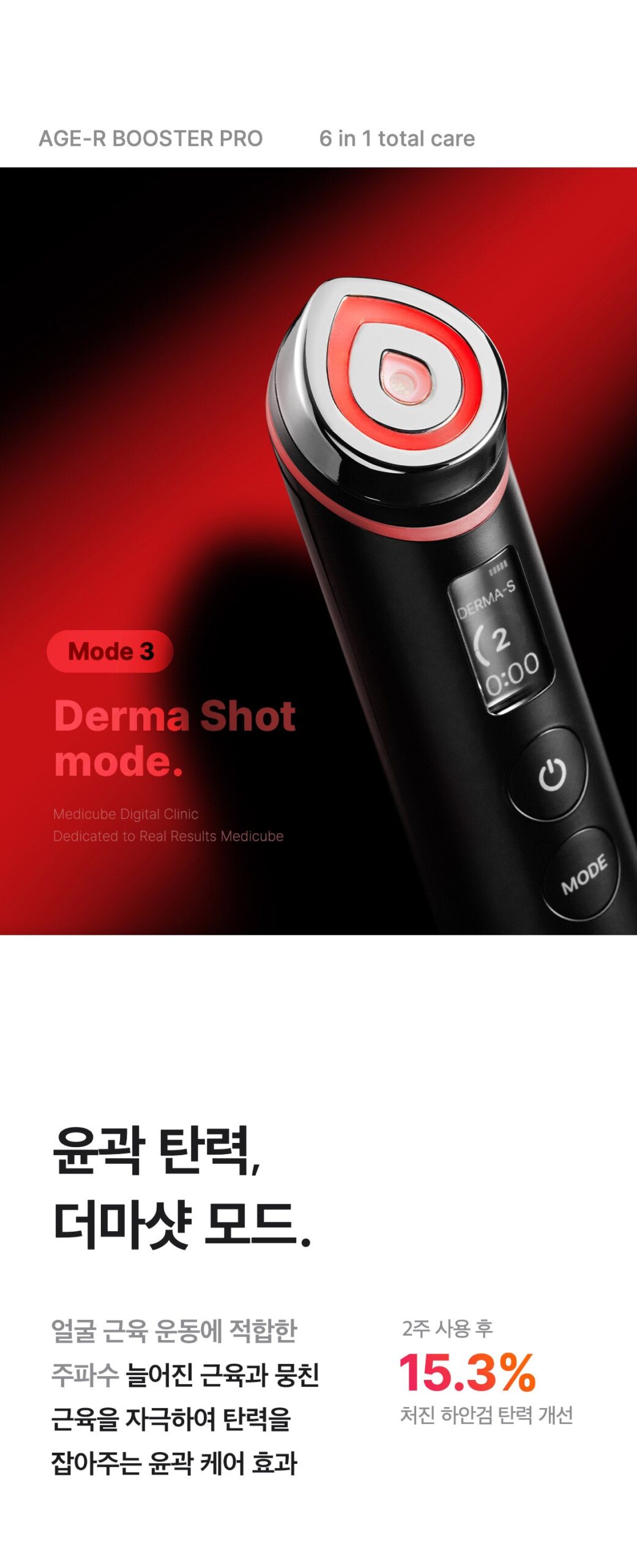 - Booster Pro’s Derma Shot mode offers more powerful contour elasticity care with optimized facial muscle stimulation.