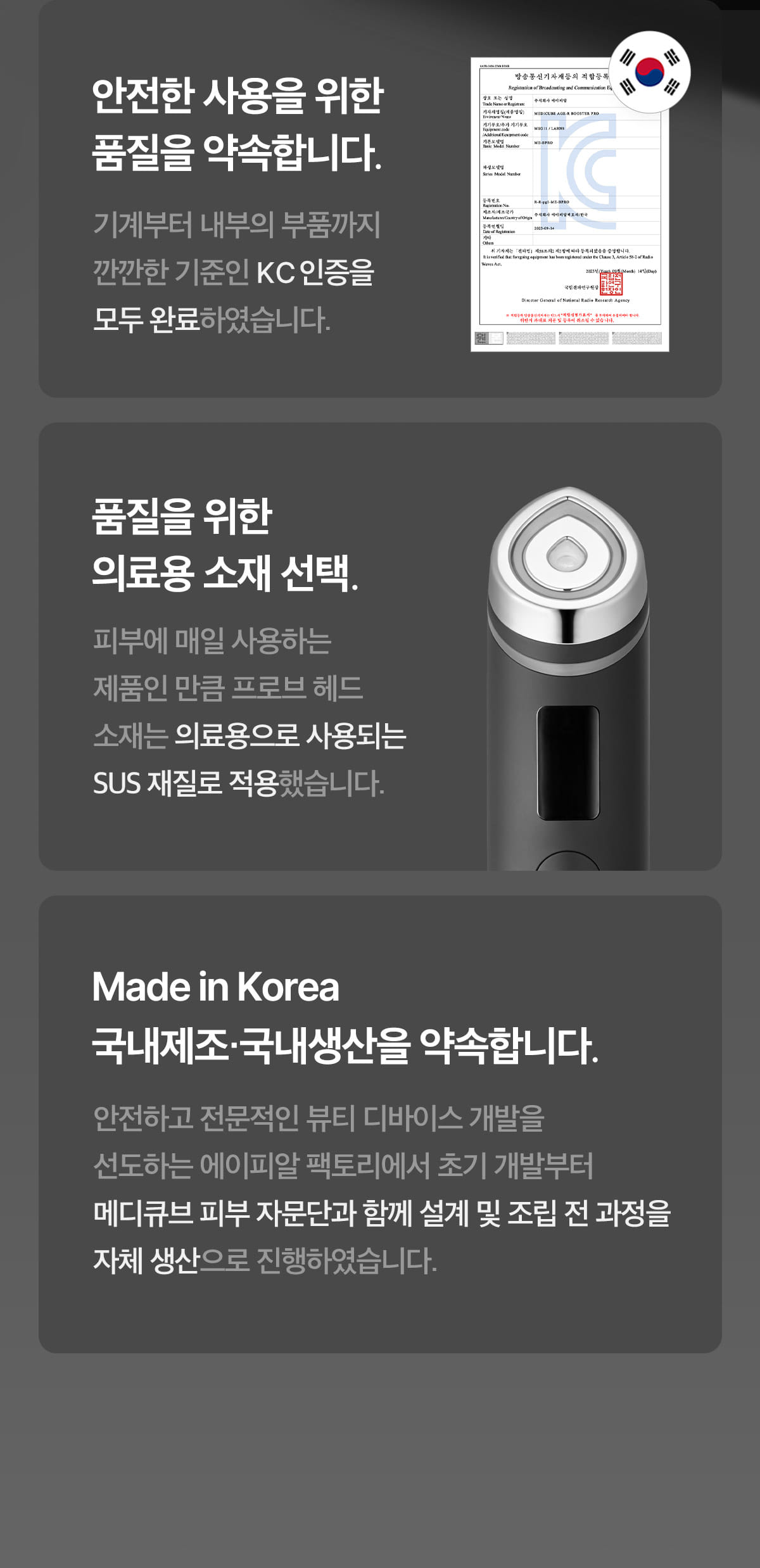 - Pore Elasticity Care (Air Shot Mode): Creates fine holes, improving pore elasticity for a smoother complexion.