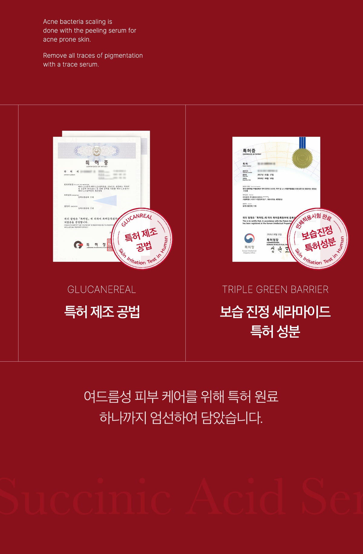 Succinic acid trace serum can be used as a hypoallergenic product for acne-prone skin even if used every day.