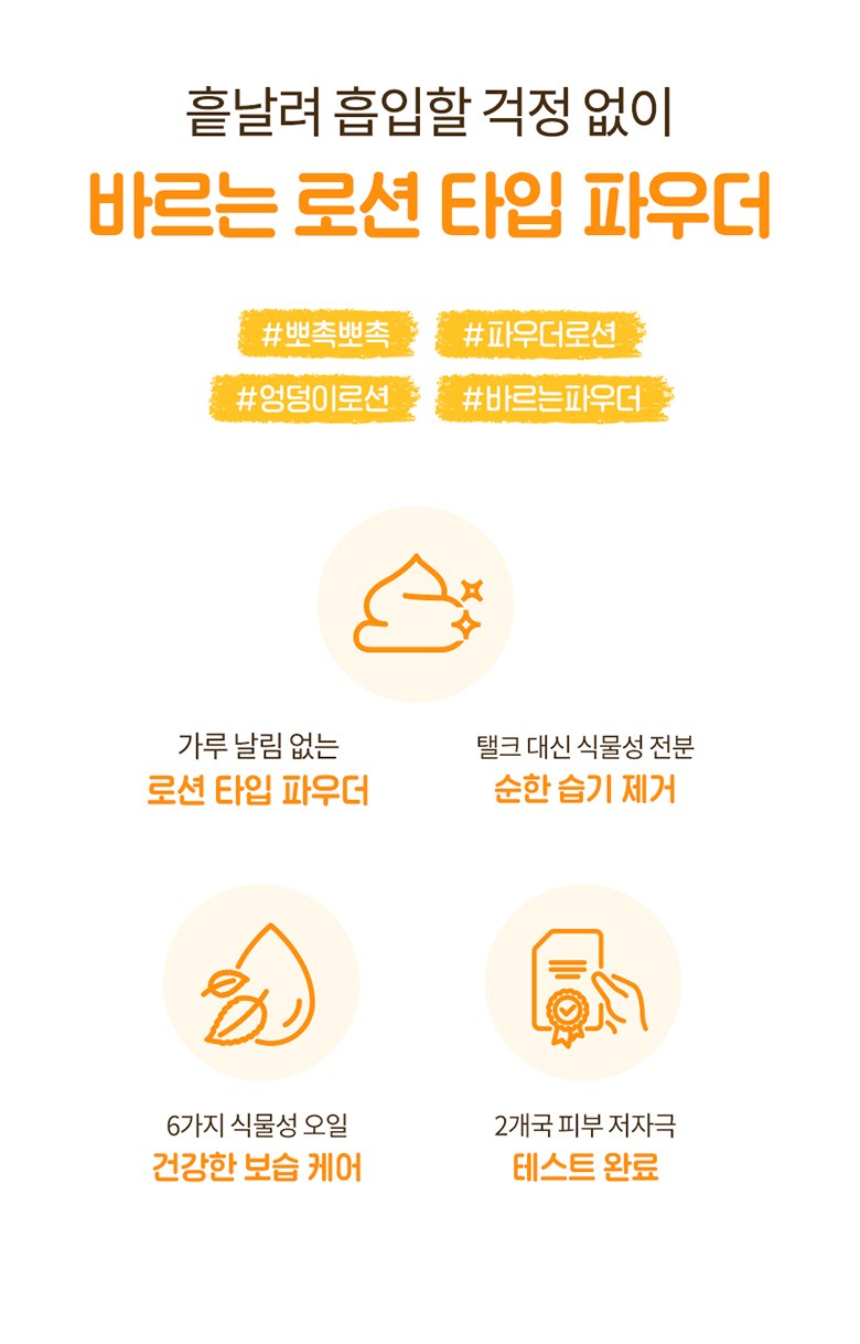 Proudly holding the top grade of excellence from the German Dermatest Company and certified hypoallergenic by the Korea Dermatology Research Institute, our lotion-type powder stands as a testament to our commitment to safety and quality in infant skin care.