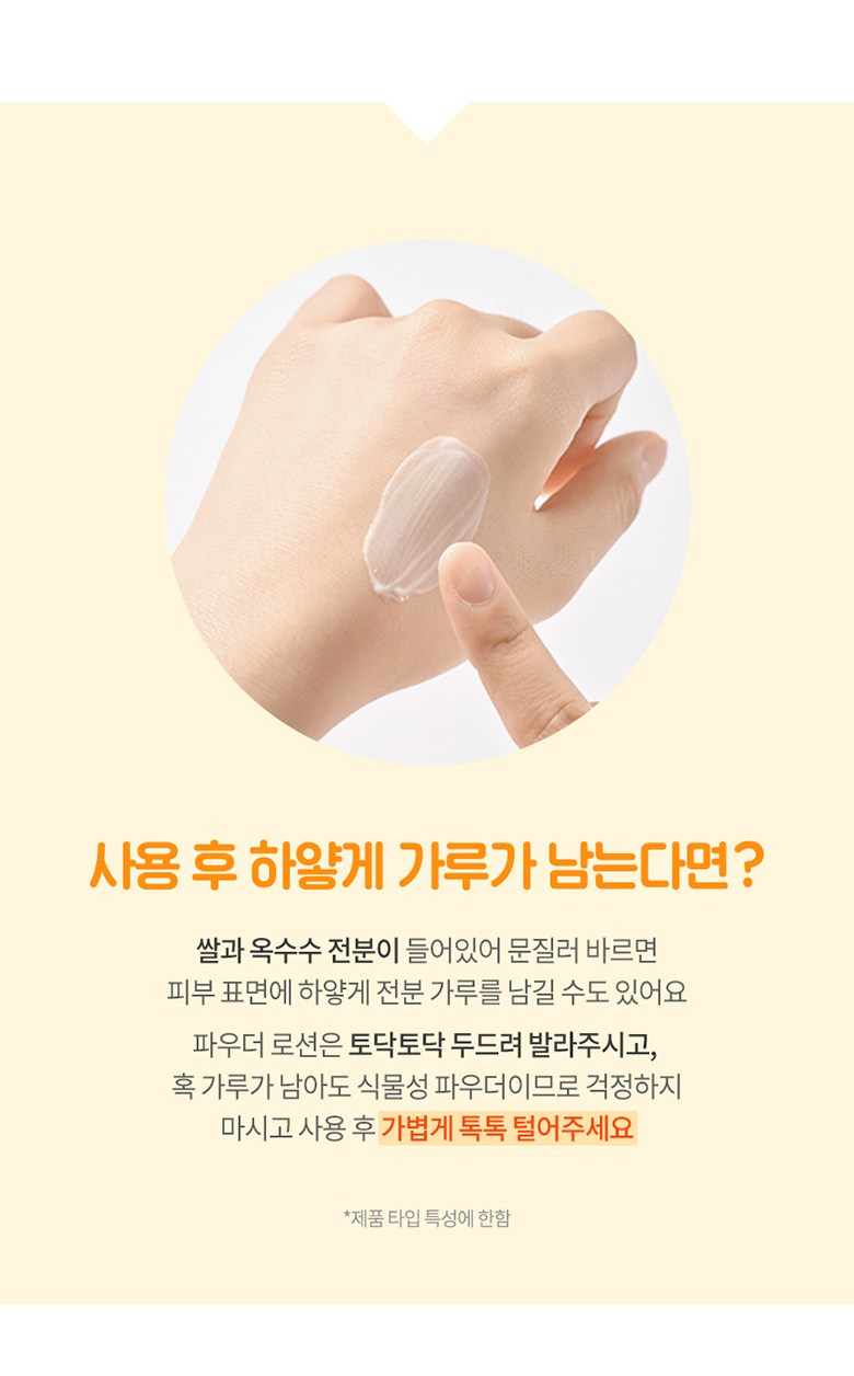 Should any white powder remain after application, it’s simply the vegetable starch. Gently pat the area; if residue persists, it can be lightly shaken off without concern.