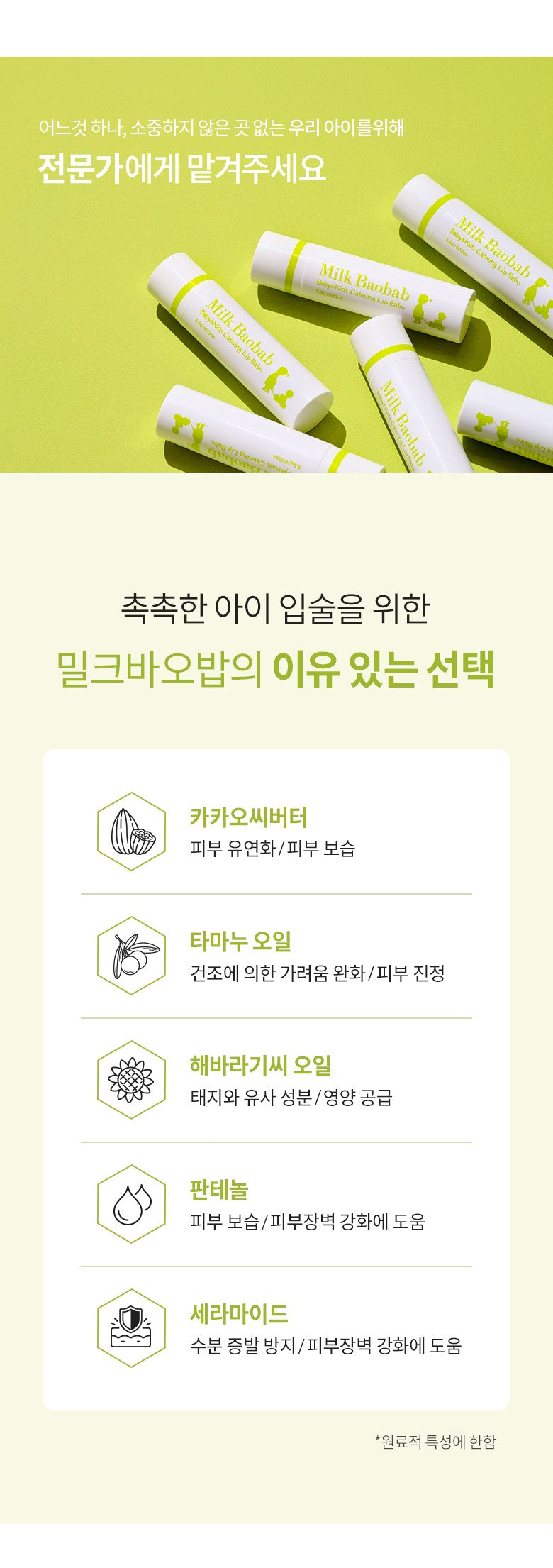 子供の唇をしっかり保護してくれるバオバブリップバーム。特にカカオシードバターがその優しい潤いを与え、毎日安心して使えるアイテムです。