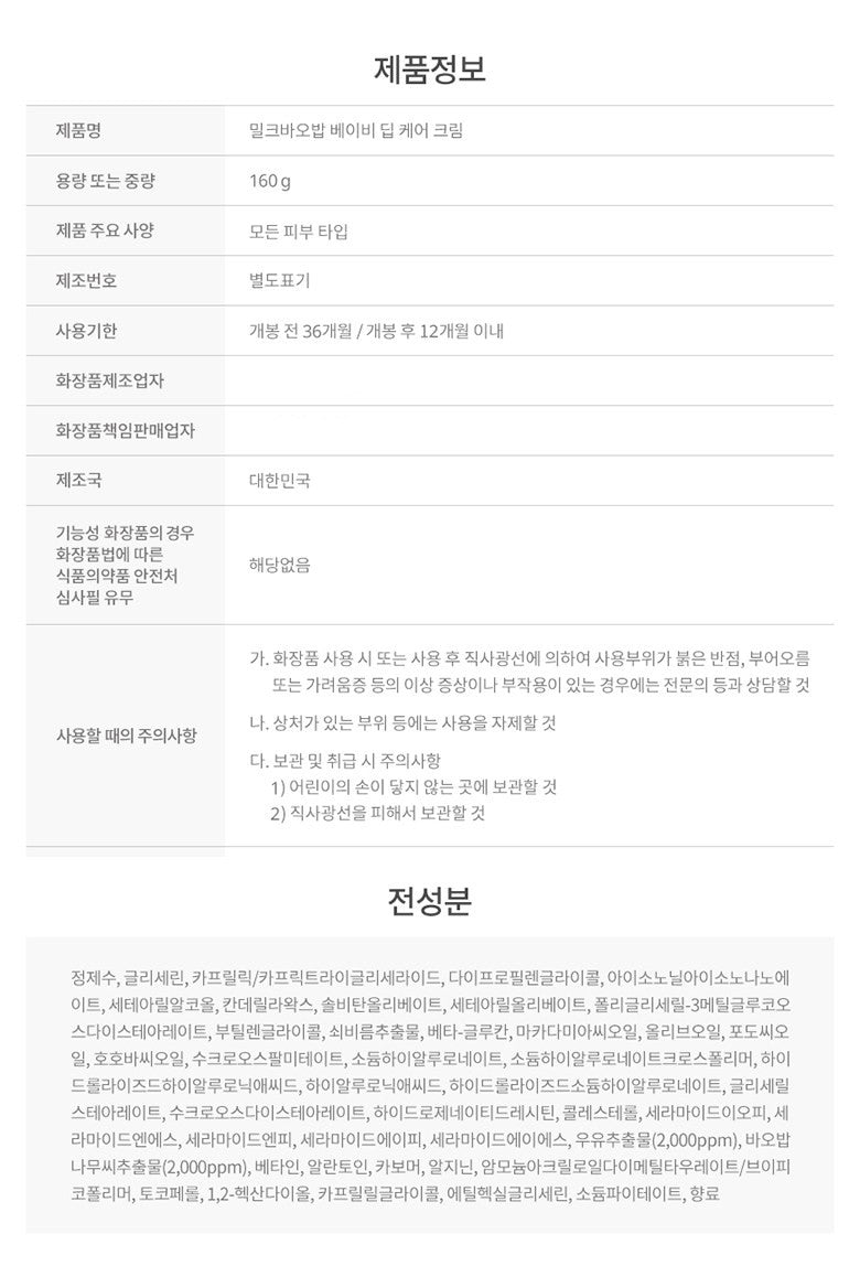Milk Baobab Baby Highly Moisturizing Hypoallergenic Deep Care Cream 160g