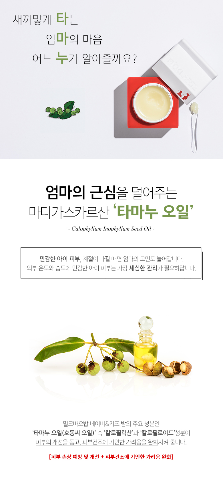 - Tamanu Oil from Madagascar (Calophyllum Inophyllum Seed Oil): Known for its remarkable soothing and moisturizing properties, Tamanu Oil is ideal for handling the delicate and sensitive skin of children, particularly when dealing with seasonal skin changes.