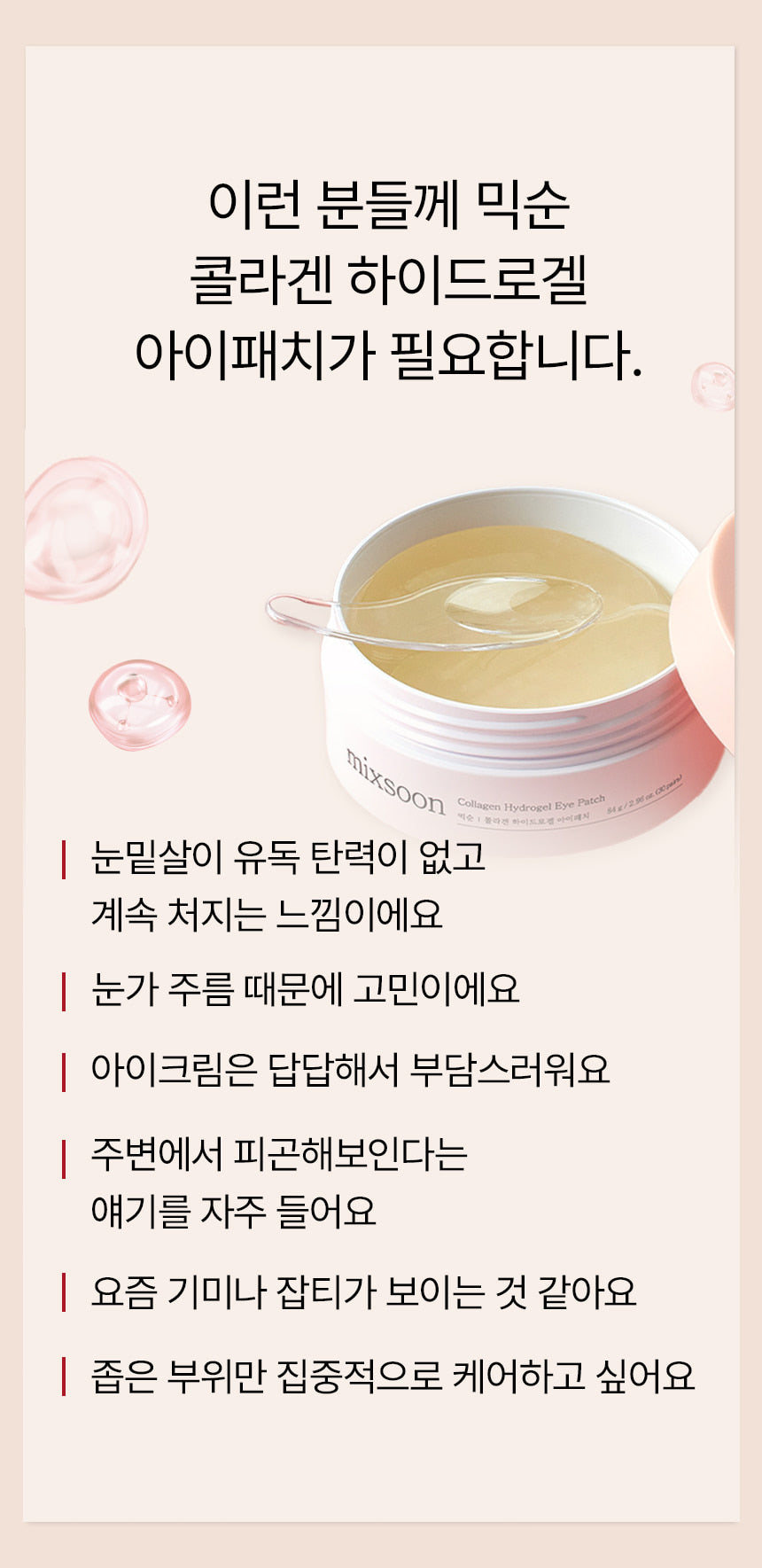 Give your eye area the focused care it deserves with Mixsoon’s Collagen Hydrogel Eye Patch, a revitalizing solution for tired, sagging skin around the eyes. This convenient and effective treatment takes just 30 minutes to rejuvenate, moisturize, and visibly improve elasticity, leaving the delicate eye area looking radiant and refreshed.