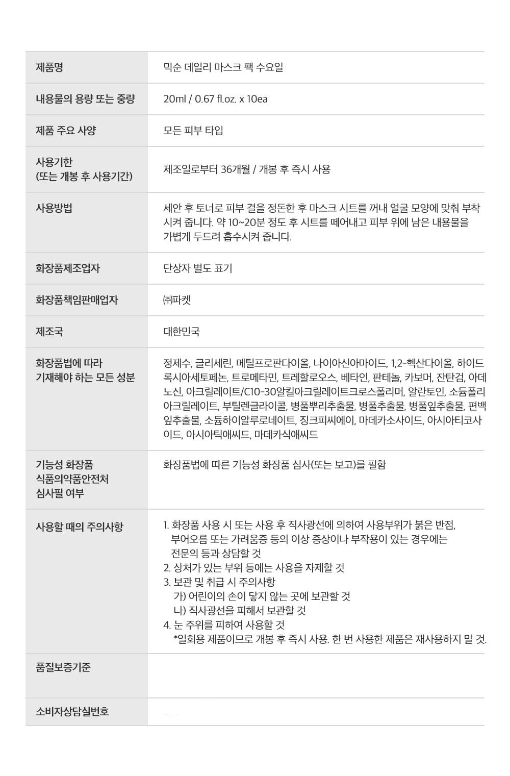 mixsoon Daily Mask Pack Wednesday 20ml*10ea