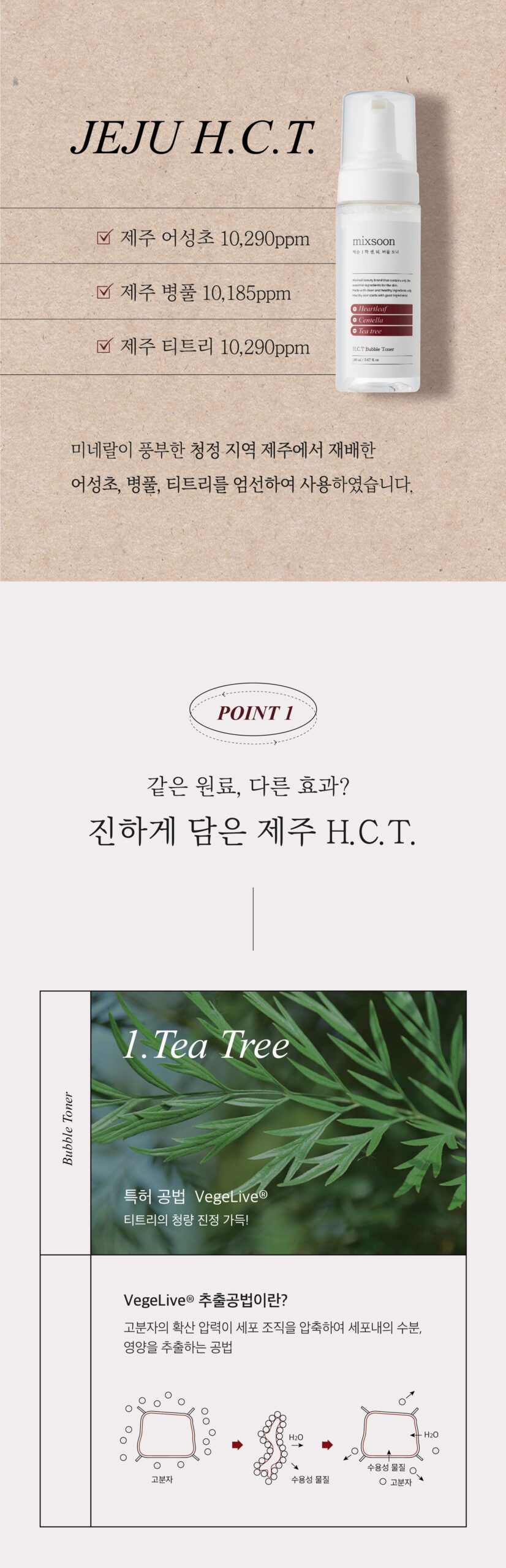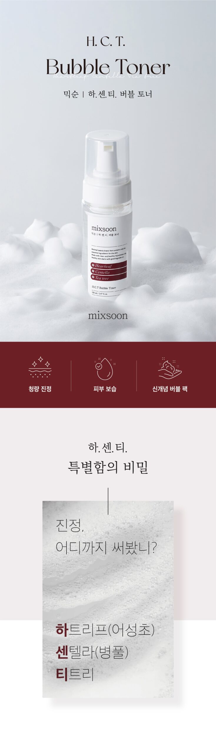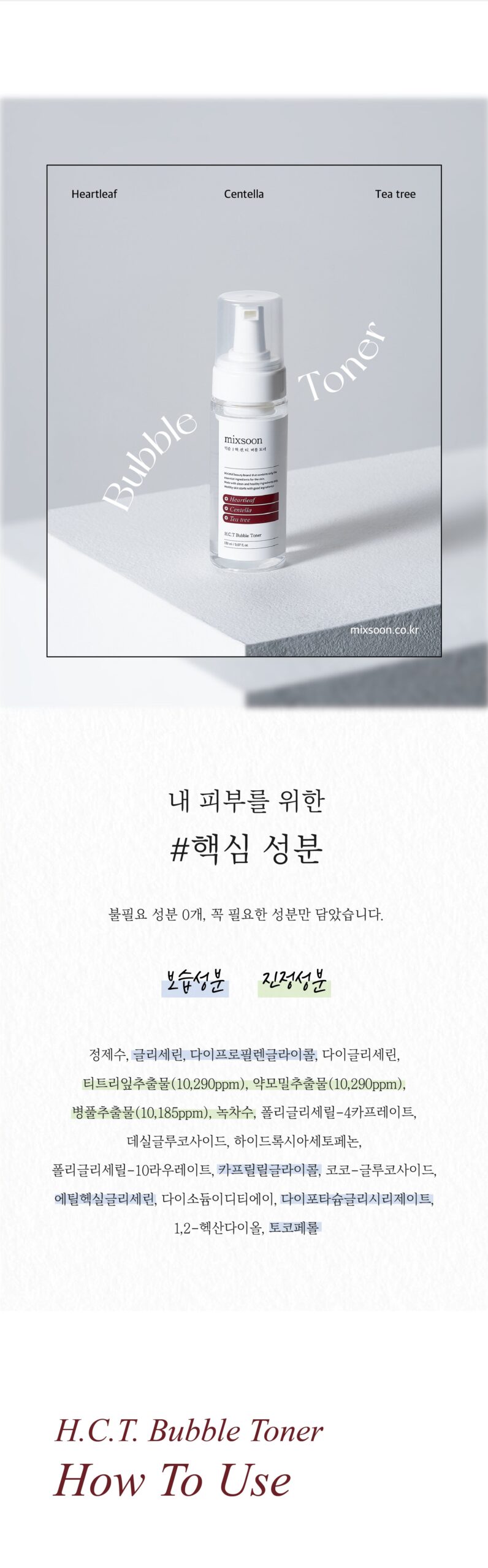 بعد تجربة الكثير من المنتجات التي تركز على ترطيب البشرة، يُعد تونر Mixsoon H.C.T. Bubble خياراً فريداً يمنحك إحساسًا منعشًا بعيدًا عن باقي المستحضرات التقليدية. يتمتع هذا المنتج بخواص رائعة مثل التنشيط المزدوج والنقاء النابع من مكونات جزيرة جيجو الساحرة، وخصوصاً الكيندل الراسخة – هوتونيا كورداتا وسيلاجوماليا سياتيكا وشجرة الشاي تتضاف بأسلوب فيجلايف® العصري لتعظيم الفوائد بأقصى شكل ممكن. ومع معالجته بطريقة تكاد تُعتبر سحرية بواسطة ما يماثله بنعومة التطرّق ومغذيات نباتات مذهلة حصلت بعد نضوج طويل مستمر بدقة لتحرير الجزيئات المغذية أثناء الضبط.”