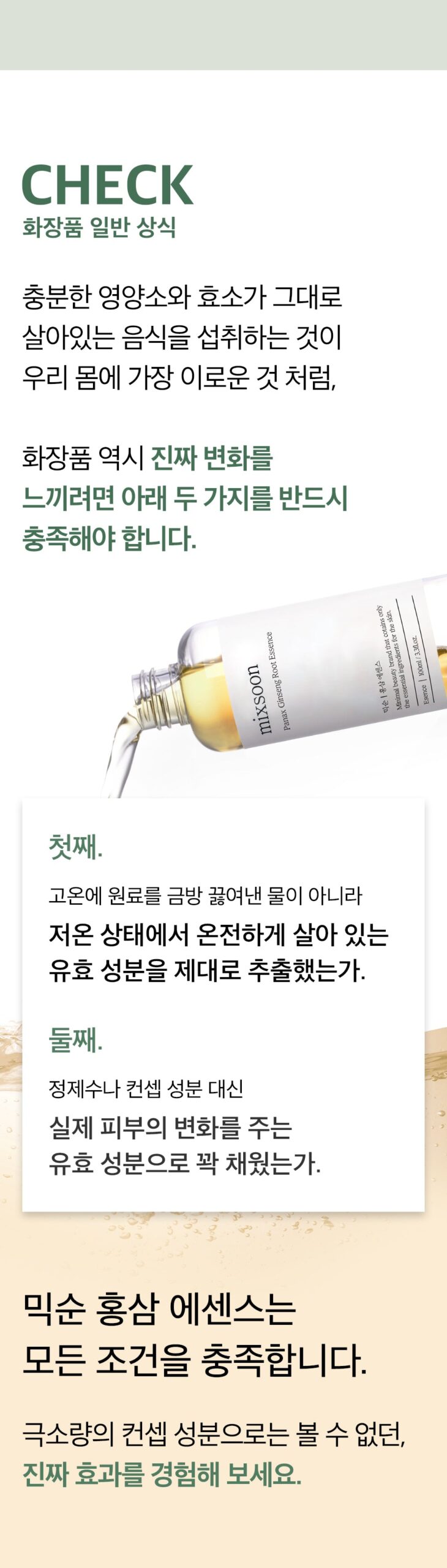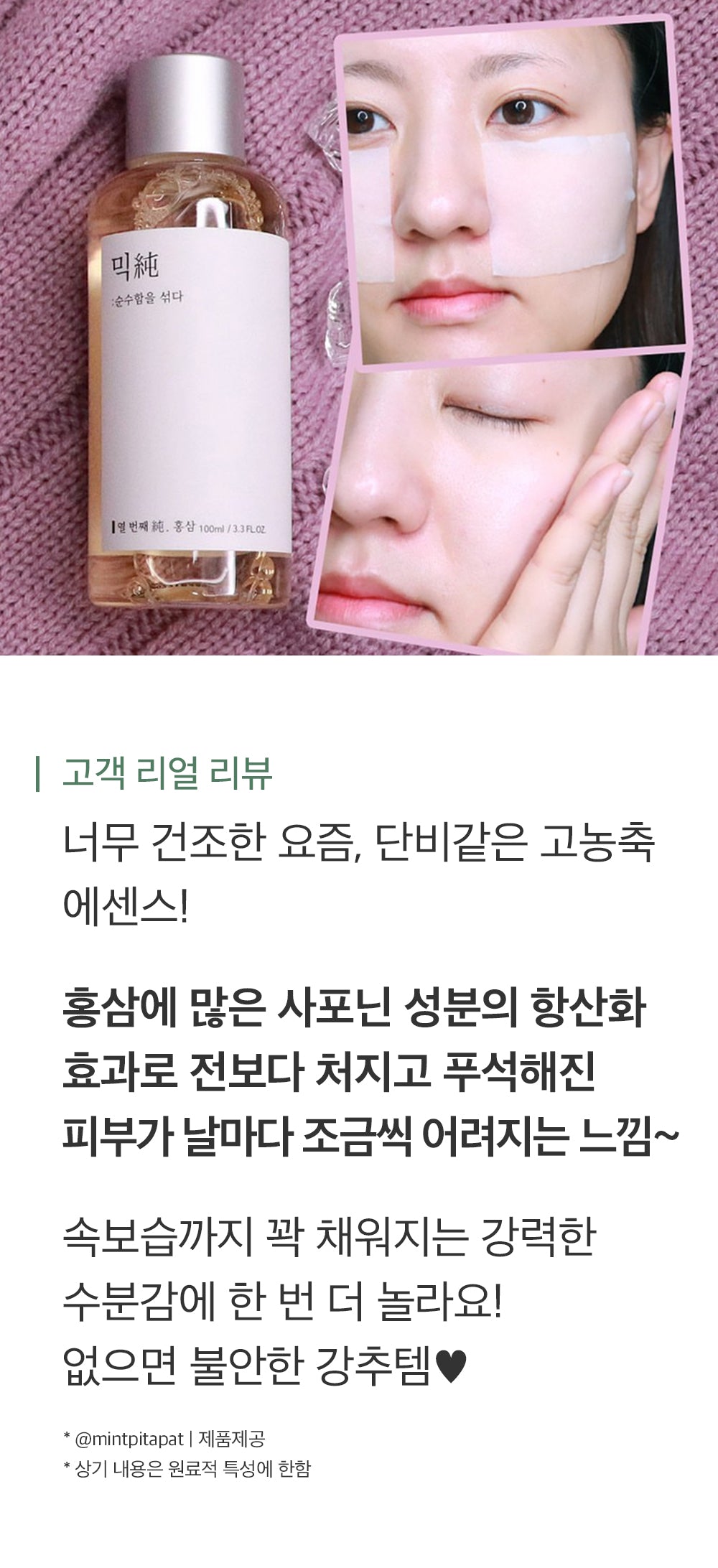 Our essence is crafted from real red ginseng, specifically selected from 4-6 year old domestic sources. This highly concentrated red ginseng extract is your secret weapon against aging, offering a wealth of nutrition for your skin.