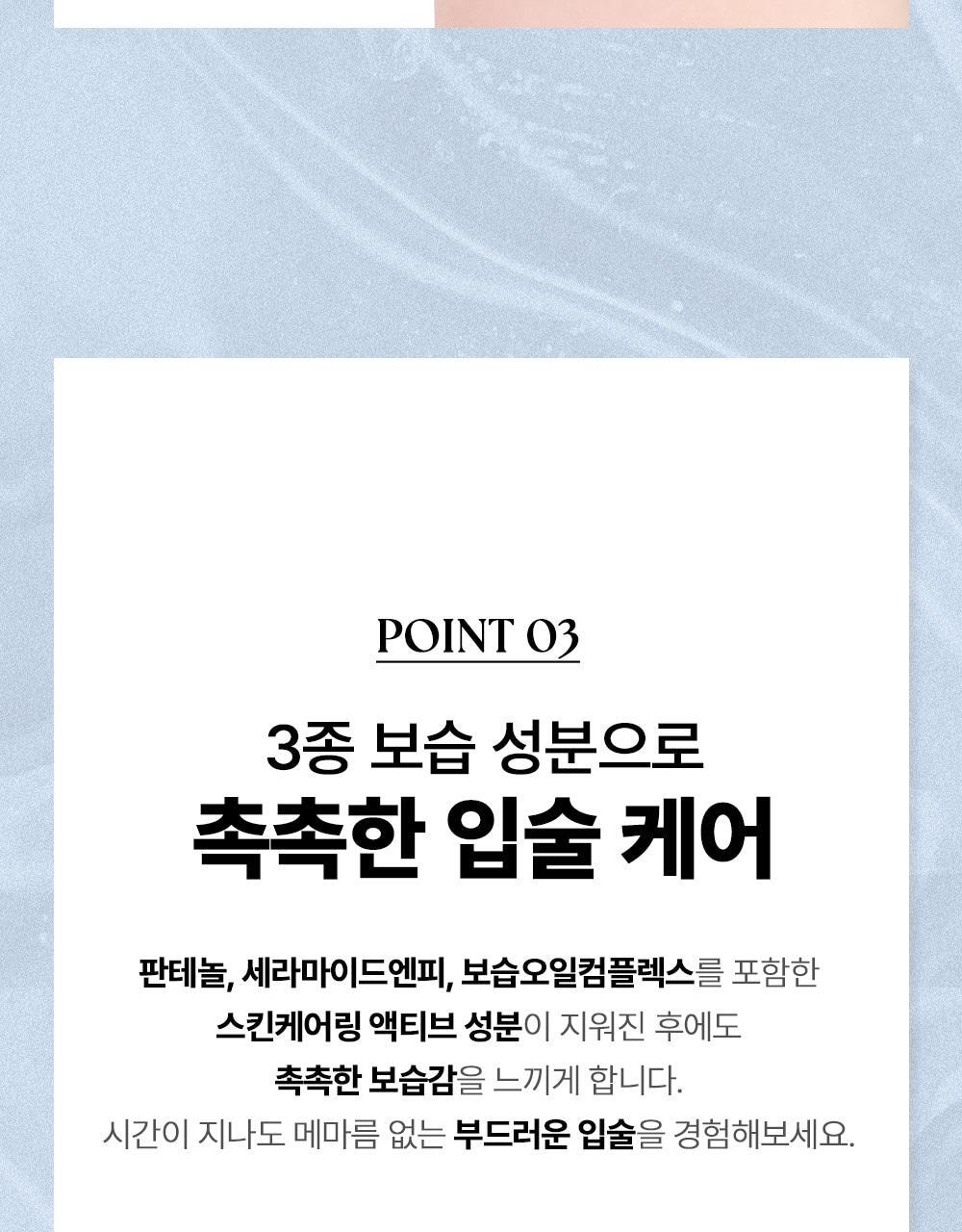 A potent blend of panthenol, ceramide NP, and a hydrating oil complex (sunflower, coconut, sweet almond oils) ensures lips stay soft and moisturized—even after the color fades.