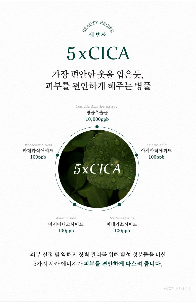 Like a comforting shield for the skin, the 5X CICA Complex helps calm irritation and strengthen the skin’s protective barrier. Each ingredient works together to soothe sensitive skin and enhance healing: