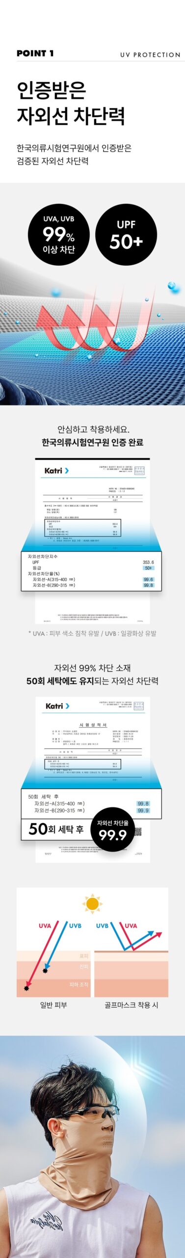 - Certified UV Blocking: Certified by the Korea Apparel Testing & Research Institute, this mask blocks over 99% of UVA and UVB rays with a UPF rating of 50+.