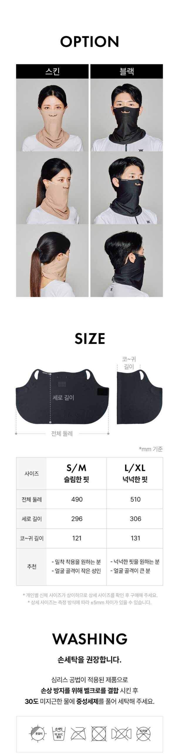 - L/XL: For a looser fit and larger facial bones. Total circumference: 510mm, Height: 306mm, Nose-ear length: 131mm.