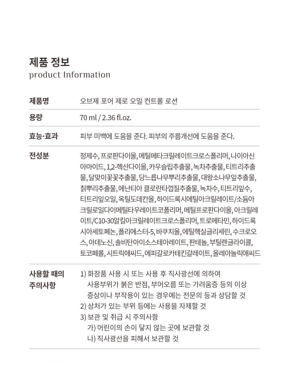 OBgE Pore Zero Oil Control Lotion 70ml