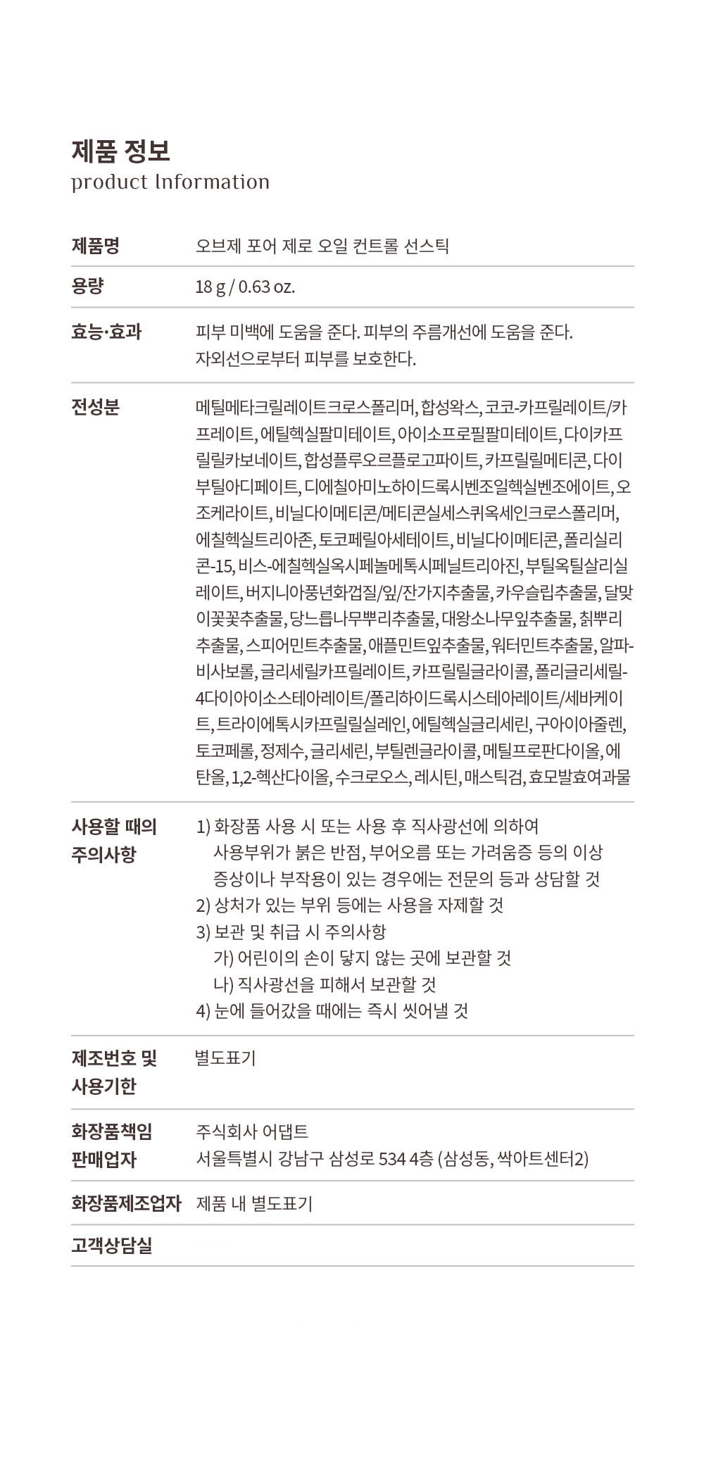12 reviews for OBgE Pore Zero Oil Control Sun Stick SPF50+ PA++++ 18g
