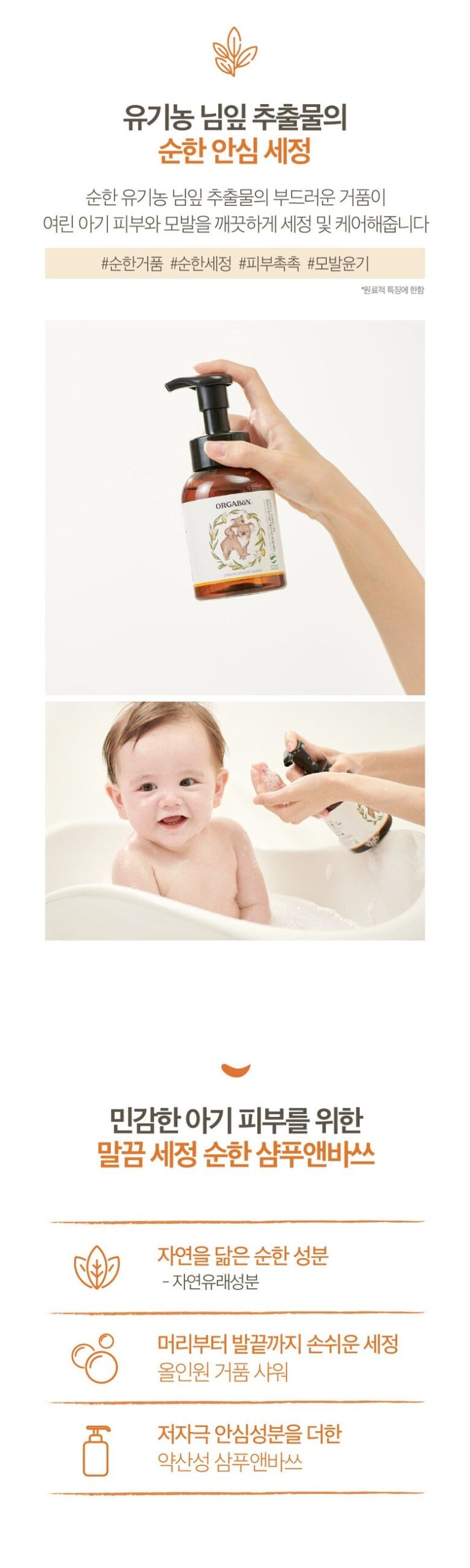 * Thoroughly cleansing mild shampoo & bath for baby’s sensitive skin