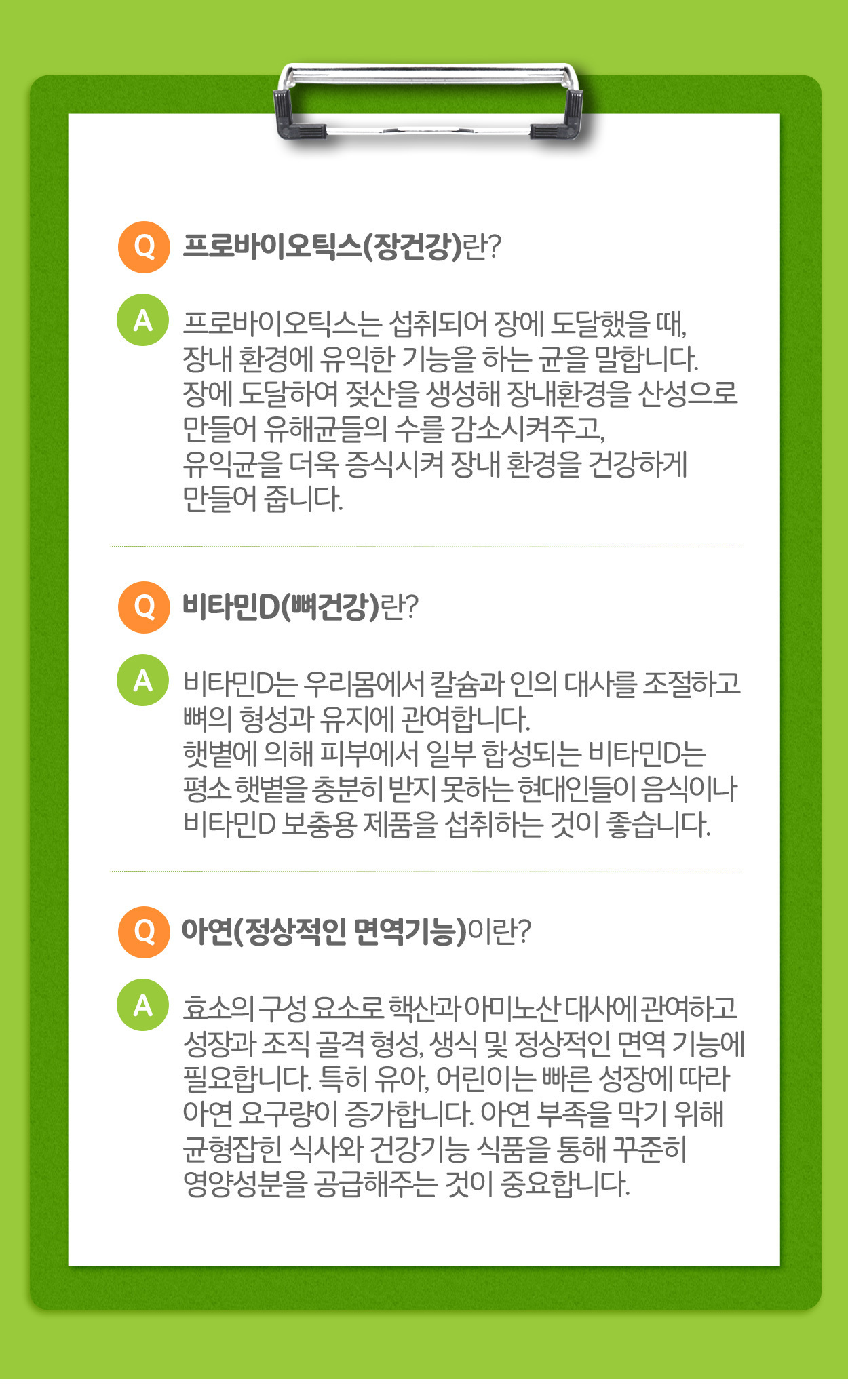 Zinc is a component of enzyme A and is involved in nucleic acid and amino acid metabolism. It’s necessary for growth, tissue skeleton formation, reproduction, and normal immune function. Zinc requirements in infants and young children increase as they grow rapidly. To prevent zinc deficiency, it is important to steadily supply nutrients through a balanced diet and health functional foods.