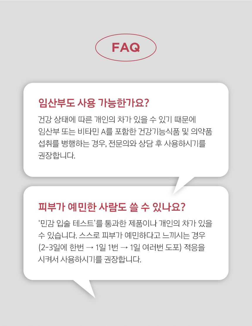 Usage During Pregnancy: While individual reactions may vary, it is advisable for pregnant women or those consuming vitamin A supplements or medications to consult a specialist before using this product.