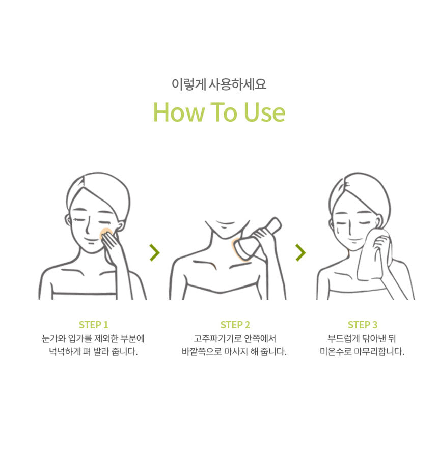 1. Apply generously to areas excluding the eye and mouth areas.