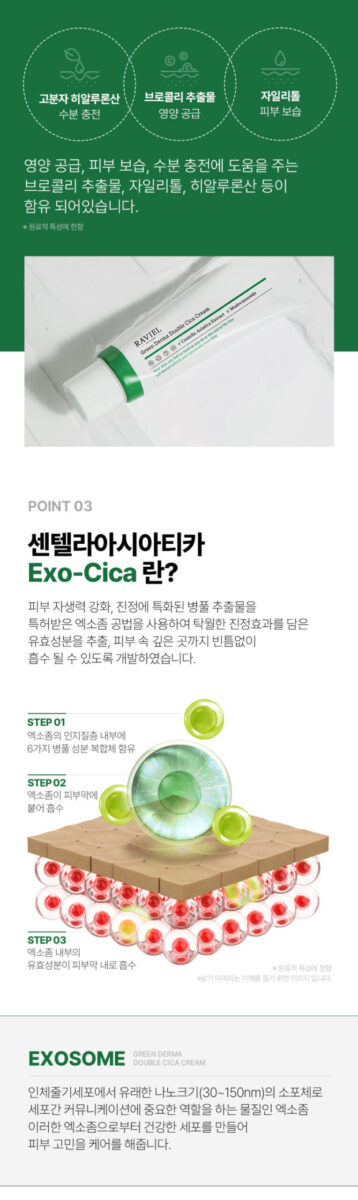 - Centella Asiatica Exosome: Strengthens the skin barrier, protects the skin, and provides a soothing effect.