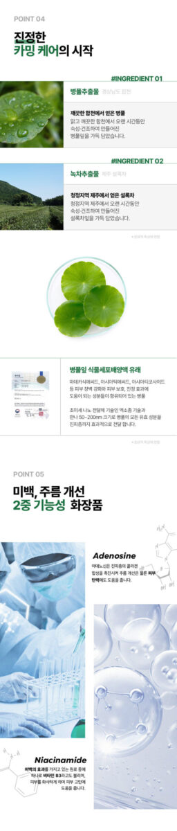 - Centella Asiatica Extract – Grown and aged in Hapcheon, Gyeongsangnam-do for maximum potency.