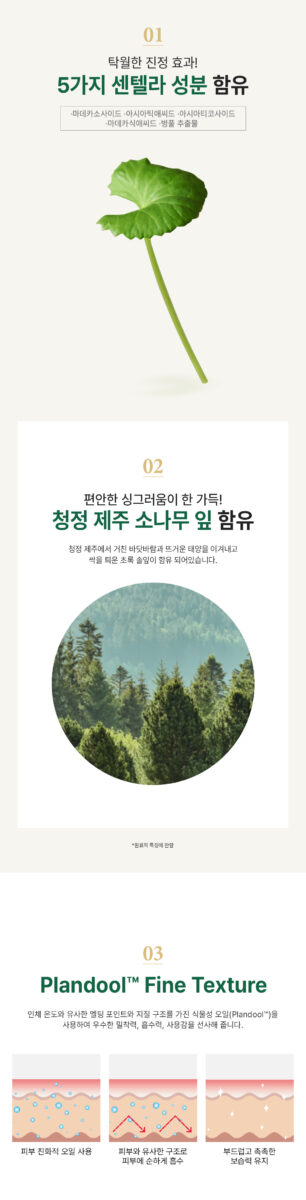 - Centella and Pine Needles: Enriched with a blend of centella ingredients and Jeju pine needles, it offers exceptional soothing and refreshing effects.